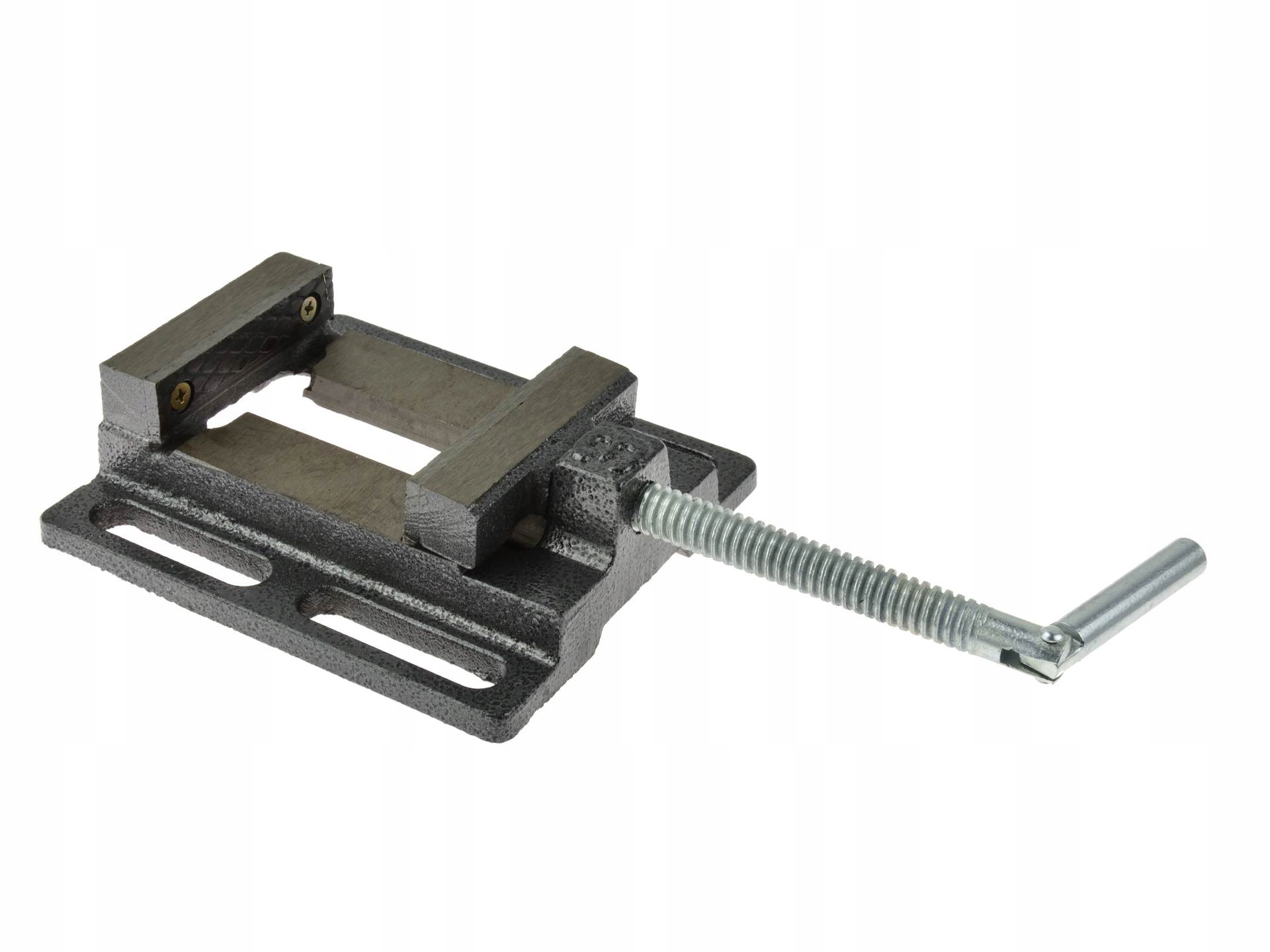 Тиски для дрели с рифленым основанием, обеспечивающим легкую установку и позиционирование тисков.