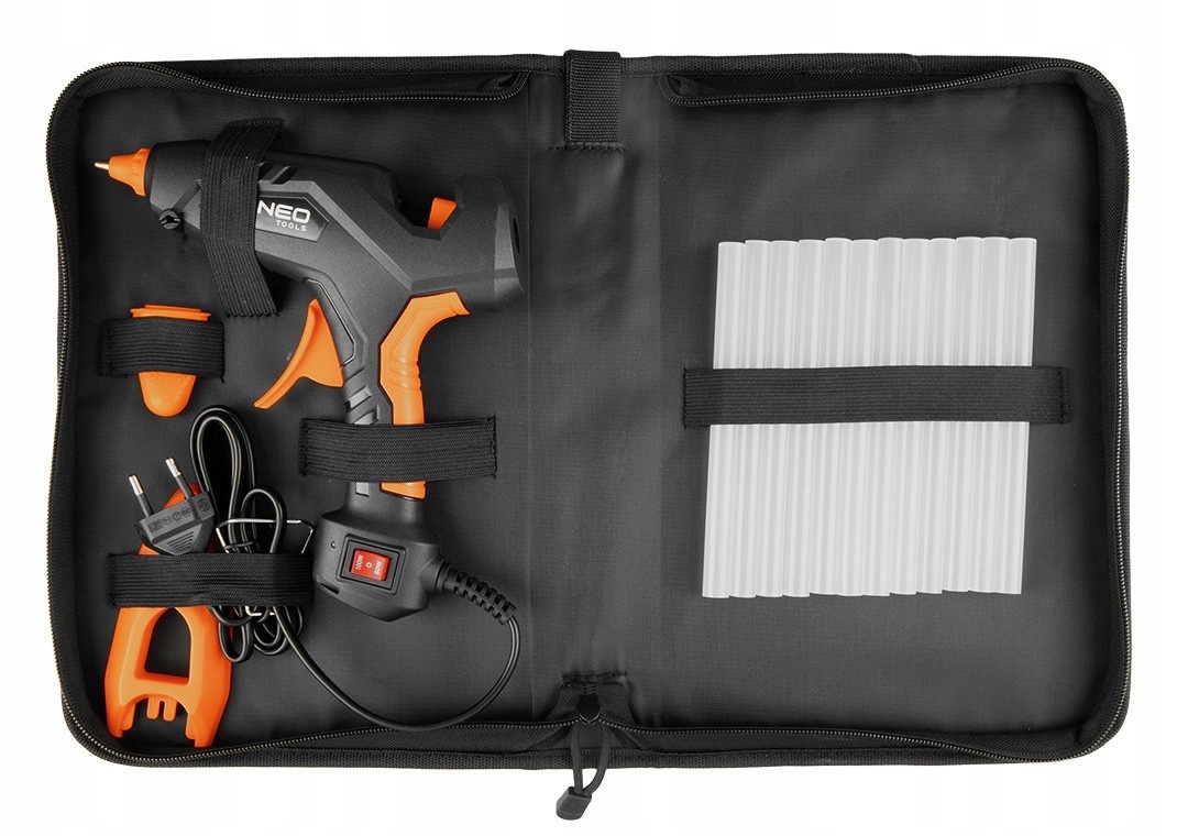 НАБОР 17-100: КЛЕЕВОЙ ПИСТОЛЕТ 11 ММ, 60/100 Вт, 12 КЛЕЕВЫХ КАРТРИДЖЕЙ, 3 ЗАЩИТЫ ДЛЯ ПАЛЬЦЕВ, ЧЕХОЛ ДЛЯ ИНСТРУМЕНТОВ NEO