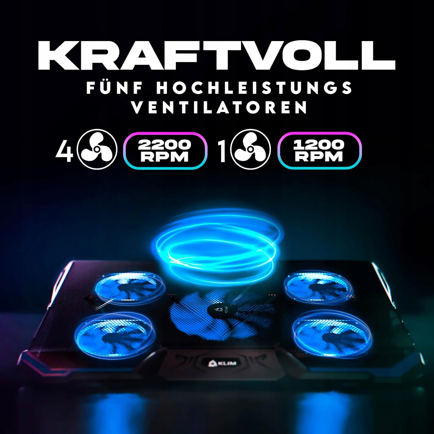 KLIM Cyclone - кулер для ноутбука - новинка 2024 года - подставка - максимальное охлаждение - предотвращает перегрев - защита ноутбука - 5 вентиляторов 2200 и 1200 rpm — охлаждающая подставка для компьютера