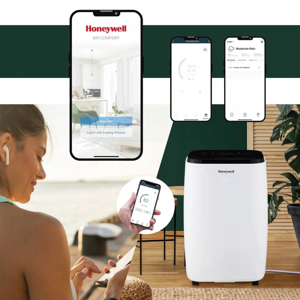 Интеллектуальный портативный кондиционер Honeywell HT09CESVWK с приложением Honeywell Air Comfort представляет собой комбинацию 3-х функций: