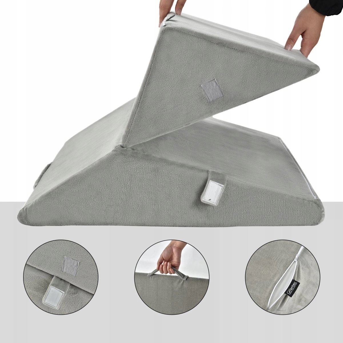 Эта многофункциональная клиновидная подушка идеально подходит для людей, у которых проблемы со сном или которые страдают от болей в ногах и спине. Эргономичный наклонный дизайн адаптируется к изгибам тела и обеспечивает поддержку головы, шеи, спины, ног или коленей. Более того, его можно свободно регулировать. Наша подушка на танкетке изготовлена из высококачественной пены с эффектом памяти и очень эластичной губки, что делает ее удобной и не провисающей. Фланелевой чехол можно легко снять благодаря застежке-молнии и постирать, чтобы подушка оставалась свежей. Кроме того, его легко переносить благодаря ручке. Вы можете использовать ее на кровати, диване или на полу во время отдыха.