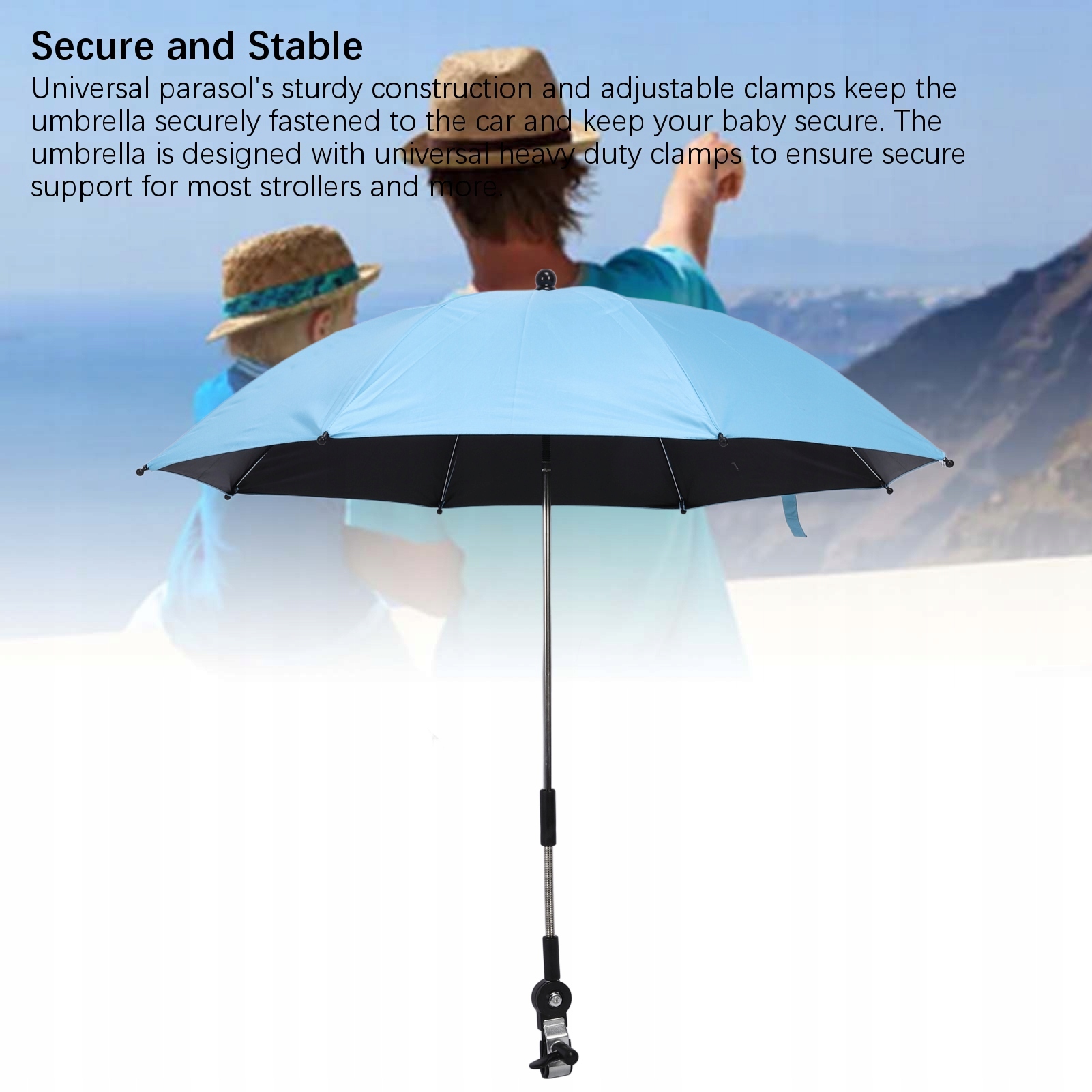 3. Безопасное и стабильное: твердое универсальное зонтичное строительство и регулируемые зажимы поддерживают зонтик, безопасно прикрепленный к автомобилю и обеспечить безопасность для ребенка. Зонт был разработан с универсальными, прочными зажимами, чтобы обеспечить безопасную поддержку для большинства колясок и других.