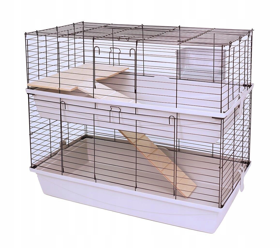 Классическая клетка для кроликов изготовлена из высококачественной стальной проволоки, покрытой порошковой краской. Клетка двухэтажная. Там есть проход. Две широкие створки и отверстие меньшего размера облегчают доступ к нашему питомцу. В комплект поставки входит бесплатный набор дров (две лесенки шириной 15 см, длиной 50 и 65 см и пол длиной 25/28 см), а также практичная внешняя кормушка серого цвета. (Возможность заказать версию без прохода: две отдельные клетки --- в комплект входят два этажа и две лестницы по 50 см --- сообщите нам об этом при выборе этого варианта.)