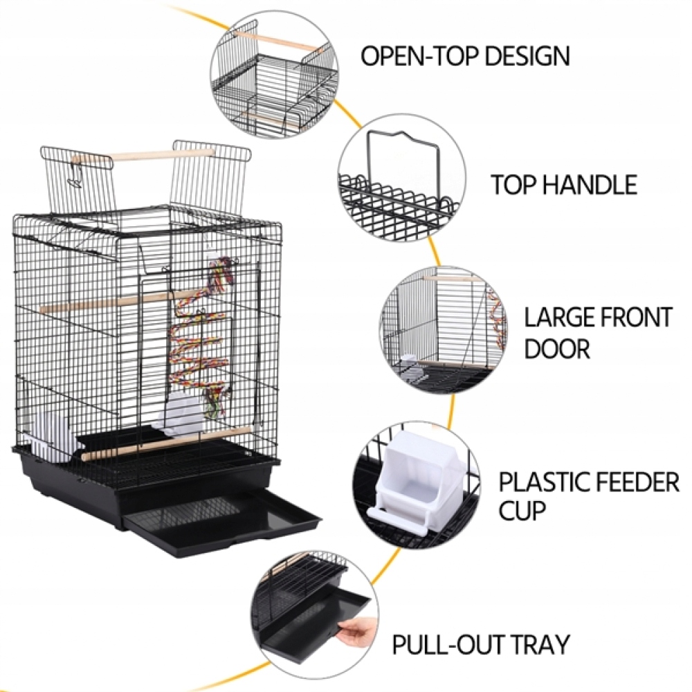 Безопасное место для отдыха: мелкие птицы могут быть очень осторожными и пугливыми, особенно на этапе акклиматизации. Эта клетка для птиц размером 40 x 40 x 58 (Д x Ш x В) обеспечивает удобную и безопасную зону отдыха для птиц маленького и среднего размера, таких как канарейки, волнистые попугайчики или неразлучники.