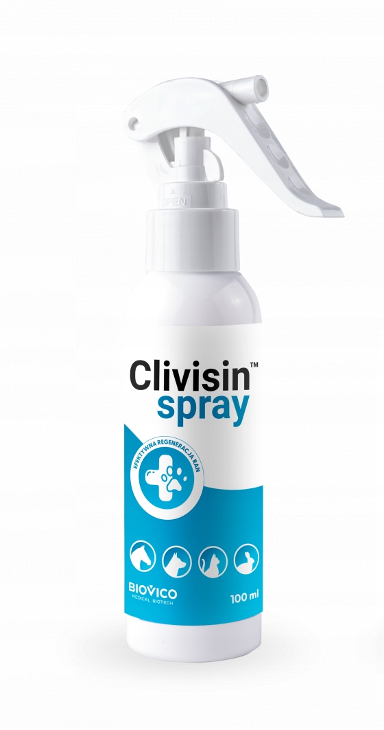 Кливизин™ Спрей предотвращает инфекции, очищает раны и ускоряет заживление поврежденной кожи, а также ран и порезов, поверхностных ссадин, укусов, ожогов и трещин. Он быстро и эффективно удаляет бактериальную флору и способствует восстановлению кровеносных сосудов. Улучшает качество жизни животных. Незаменим при смене повязок и для растворения повязок, покрытых струпьями. Не раздражает кожу.