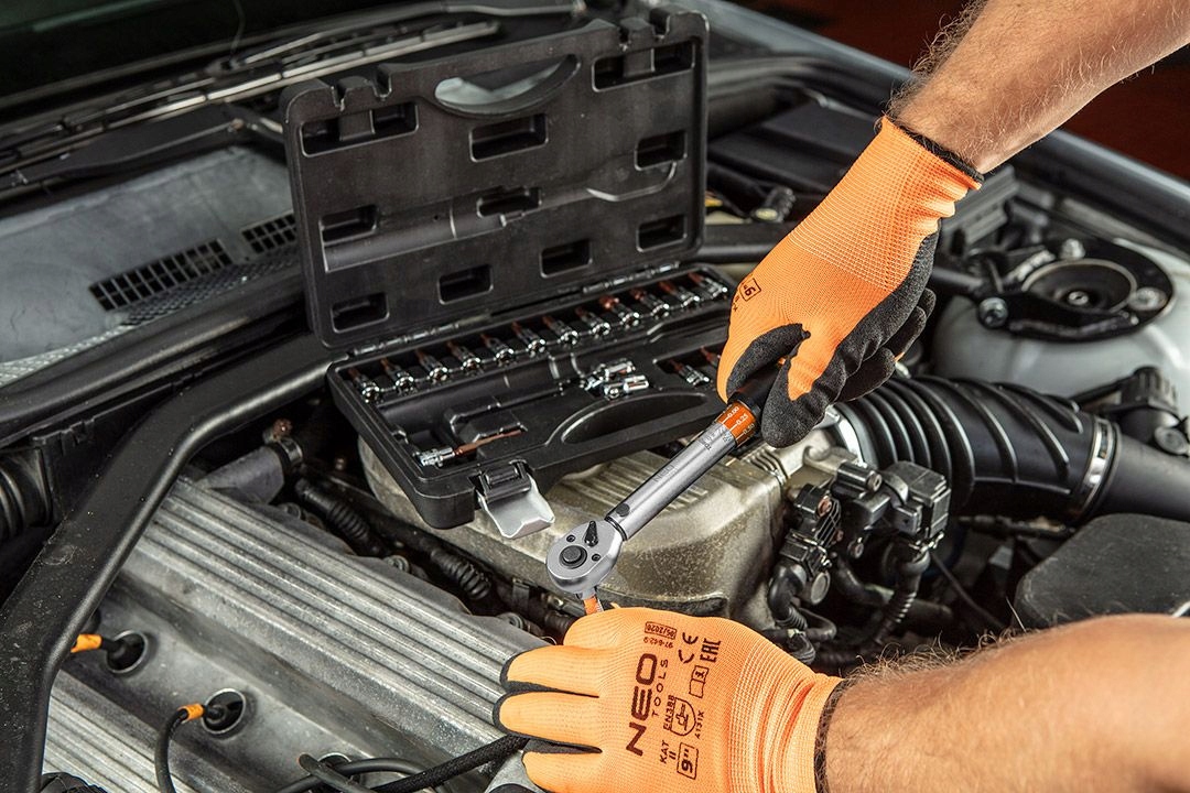 KLUCZ DYNAMOMETRYCZNY DWUKIERUNKOWY 1/4", 5-25NM, ZESTAW 21 SZT. NEO