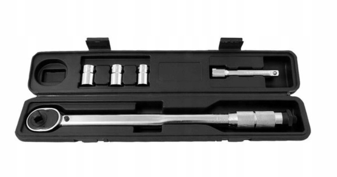 - Динамометрический ключ + 3 головки и 1 удлинитель.