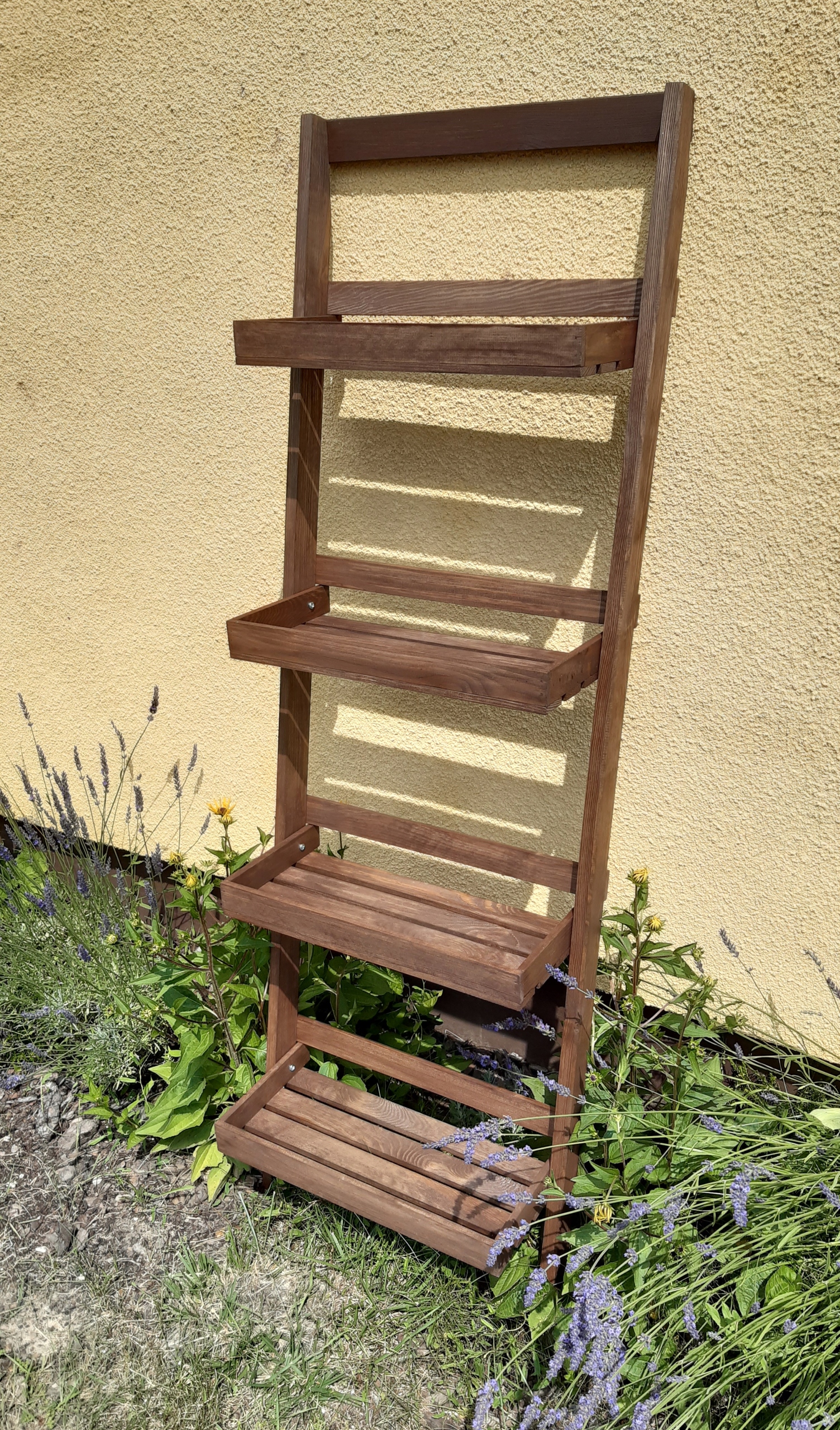 Продаю деревянную наклонную подставку для цветов, коричневого цвета, окрашенную защитной краской, цвет среднего палисандра.