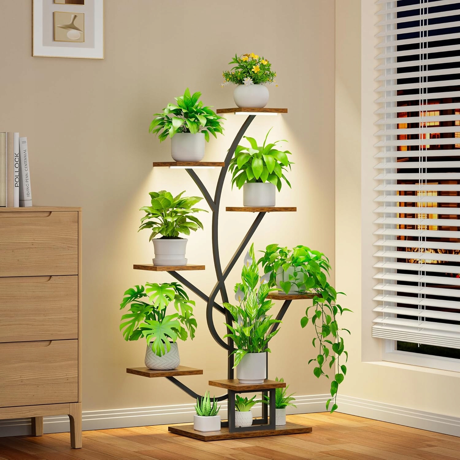 Подставка для комнатных растений с освещением для выращивания — 8-уровневая угловая полка для комнатных растений, высота 50 дюймов, подставка для нескольких растений с подсветкой для комнатных растений, подставка для цветов, демонстрационная подставка для дома, патио, черный