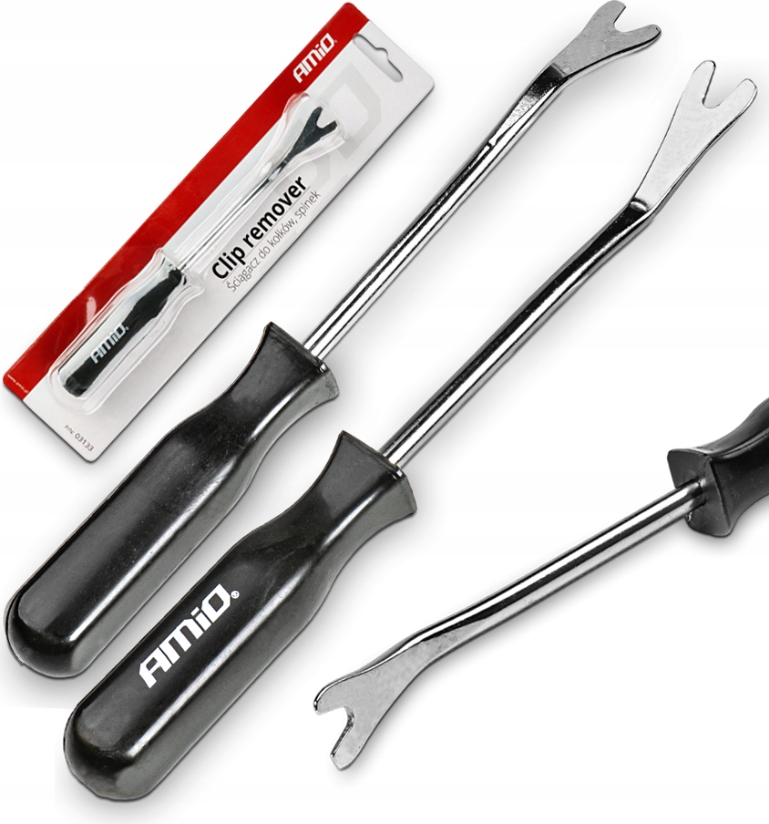 Рычаг позволяет легко снять обивочные штифты без риска повредить края при поддевании. выключенный. Съемник не царапает обивку, позволяя сохранить эстетику салона автомобиля. Ключ для извлечения оснащен удобной нескользящей ручкой. Вы также можете использовать его, чтобы удалить счетчик и радио.