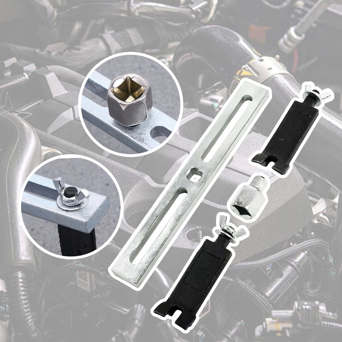 Функционал ключа позволяет регулировать расстояние между рычагами от 30 мм до 160 мм, что дает возможность работать со многими моделями автомобилей и другой автотранспортной техникой.