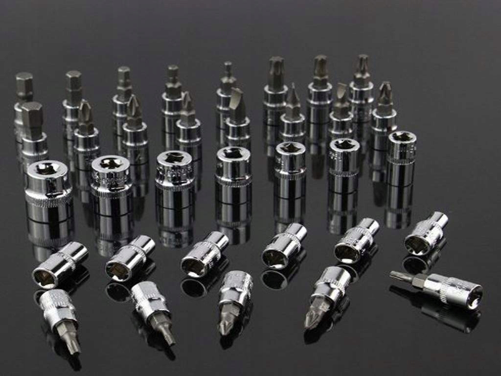 В комплект входят множество головок, насадки-отвертки, удлинители (в том числе гибкий), 2 вида ручек - отверточная и продольная, карданный шарнир, переходник и трещотка с переключателем, позволяющая быстро и легко менять направление вращения. вращение. Каждый из удлинителей, ручек, храпового и карданного шарнира оснащен шариком, который предотвращает выпадение прикрепленной головки - это повышает эффективность работы и влияет на комфорт и безопасность, во время работы ни одна головка не выпадет.