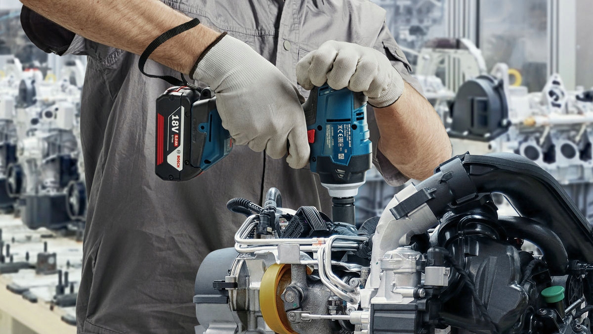 Сталь, бетон и машиностроение требуют ударных гайковертов с очень высоким крутящим моментом. Аккумуляторный ударный гайковерт GDS 18V-400 от BOSCH имеет самый высокий крутящий момент в своем классе – 400 Нм. Это достаточно высокий параметр, чтобы справиться с шурупами большого диаметра, завинчиваемыми преимущественно в металл и бетон. Благодаря металлическому редуктору и корпусу устройство долговечно и устойчиво к повреждениям.