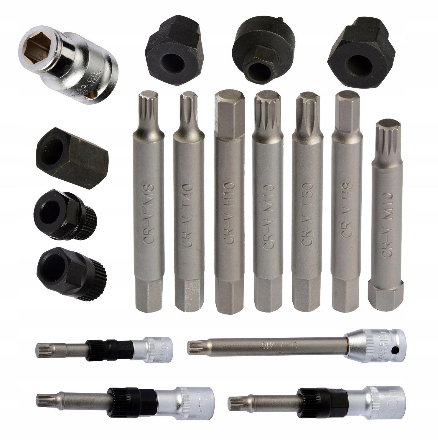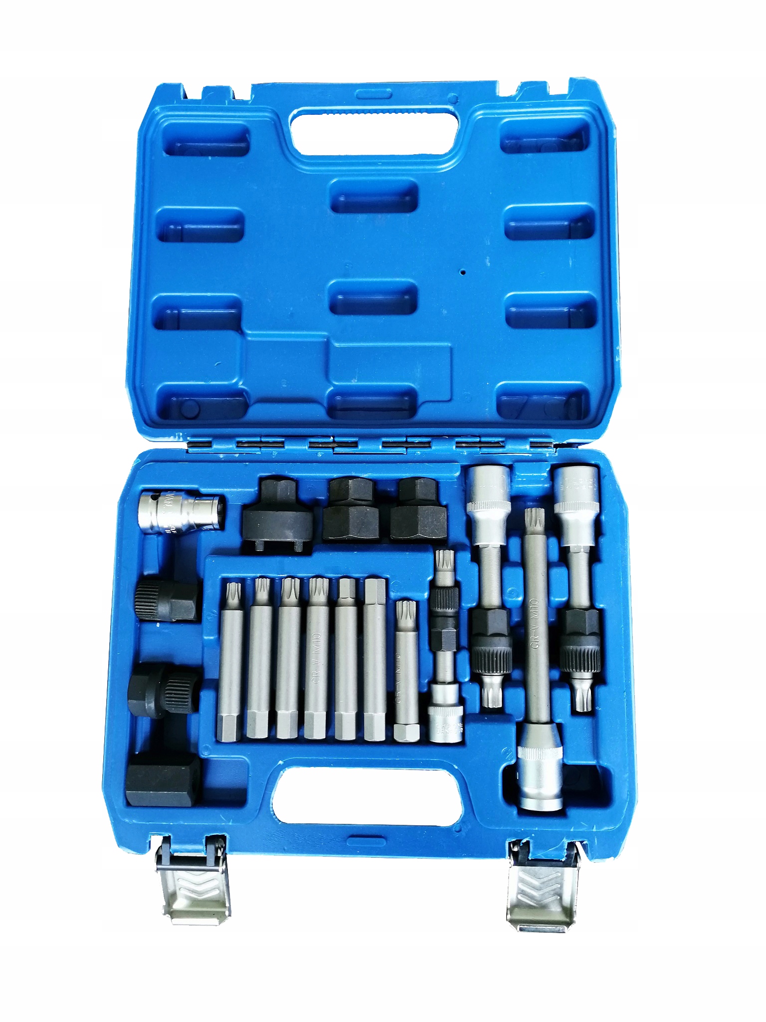 - В комплект входит 18 элементов. Набор из 18 ключей для установки и снятия генераторов со сцеплением Bosch и Magneti Marelli.