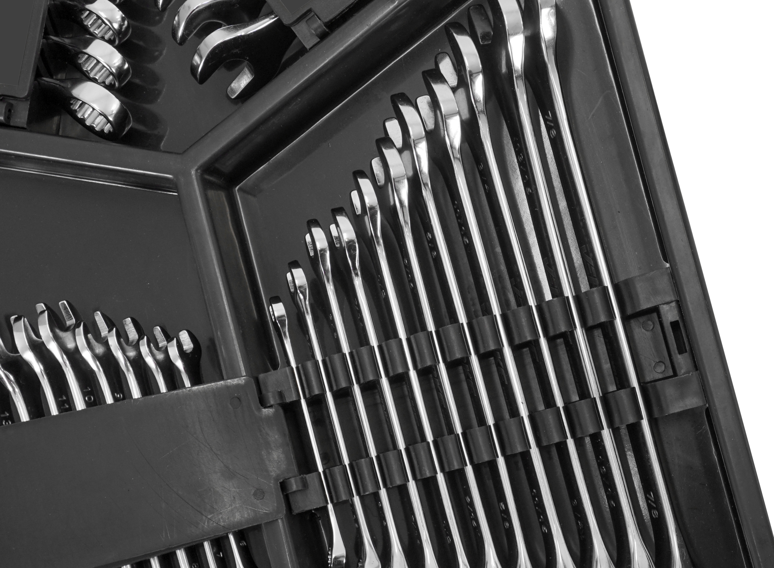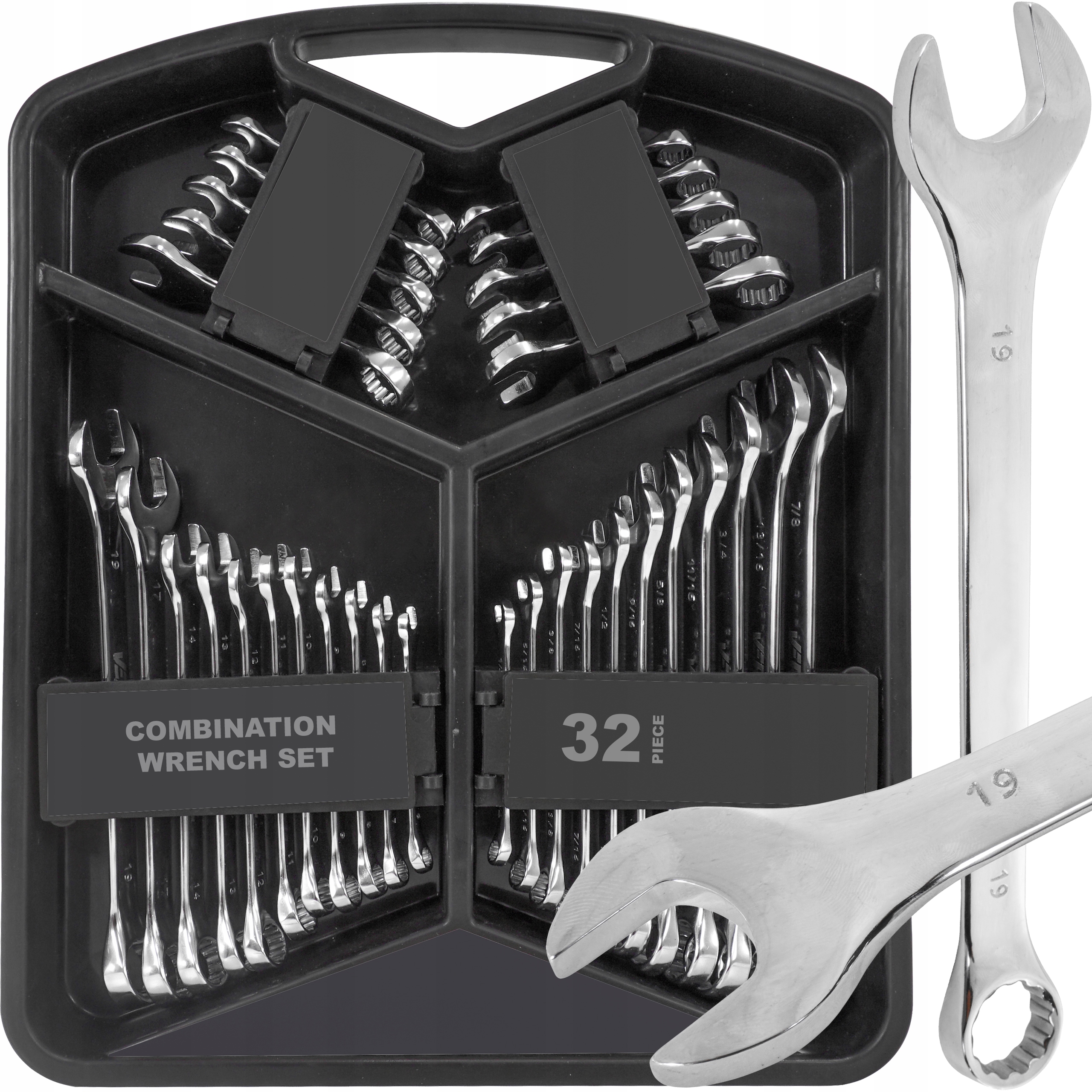 КЛЮЧИ КОМБИНИРОВАННЫЕ МЕТРИЧЕСКИЕ И ДЮЙМОВЫЕ, 32 ШТ. НАБОР КАССЕТ 6–19 ММ