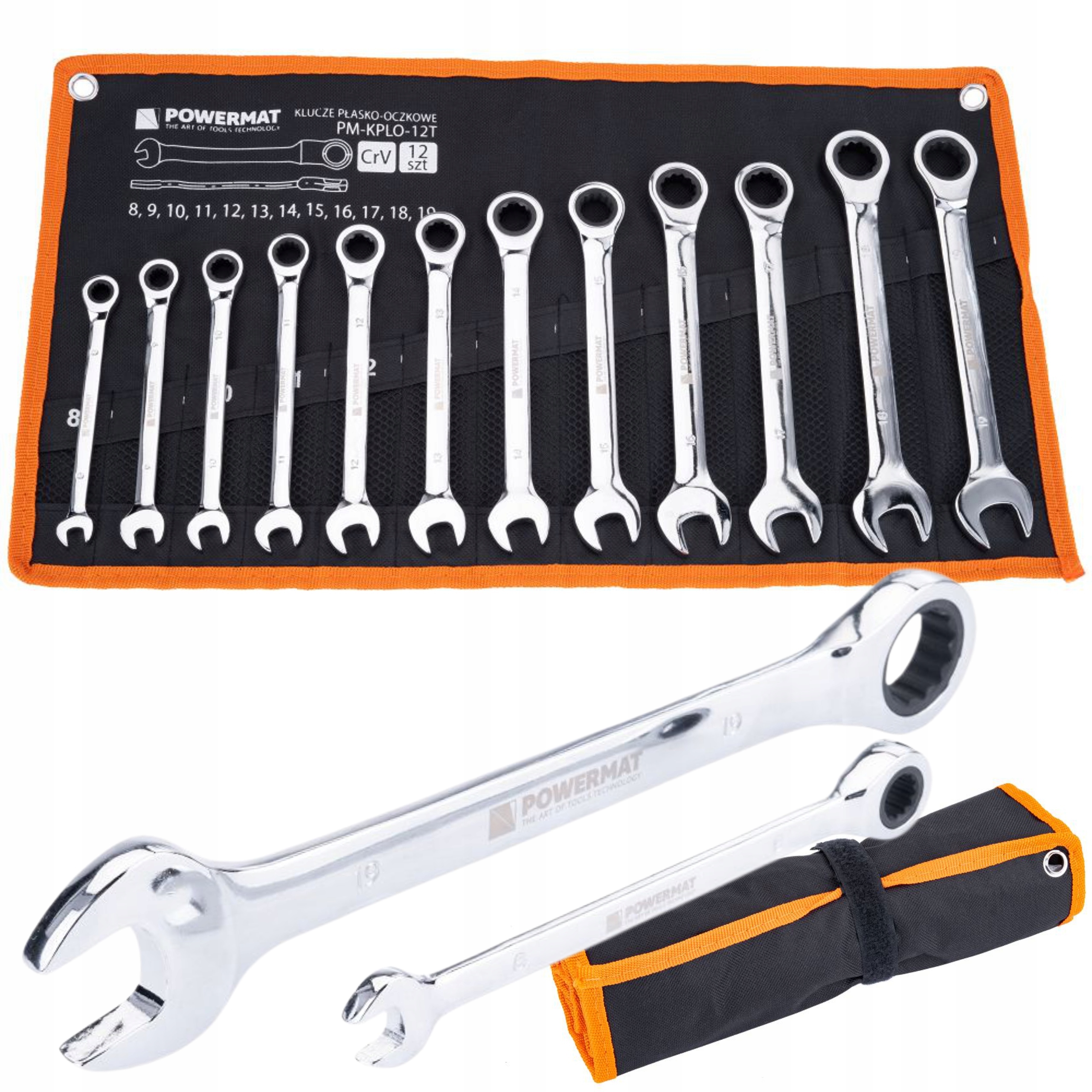 КЛЮЧИ НАКИДНЫЕ С ТРЕЩОТКОЙ 8-19мм 12 ШТ + ПЛАСТИНКА ПМ-КПЛО-12Т