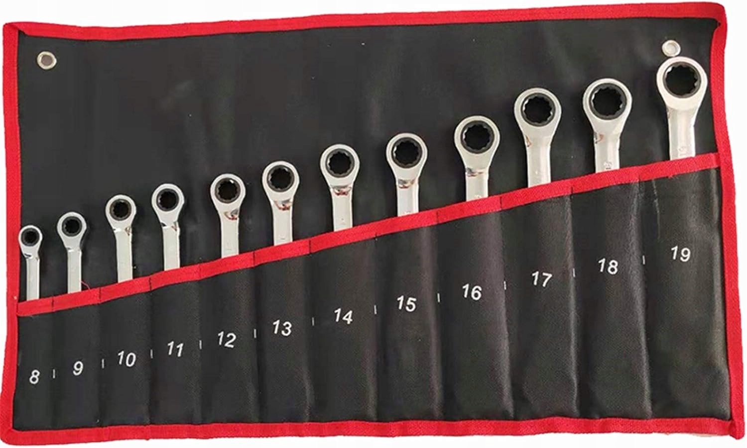 КЛЮЧИ НАКИДНЫЕ С ТРЕЩОТКОЙ 8-19мм 12 ШТ. КОМПЛЕКТ С ЧЕХОЛОМ