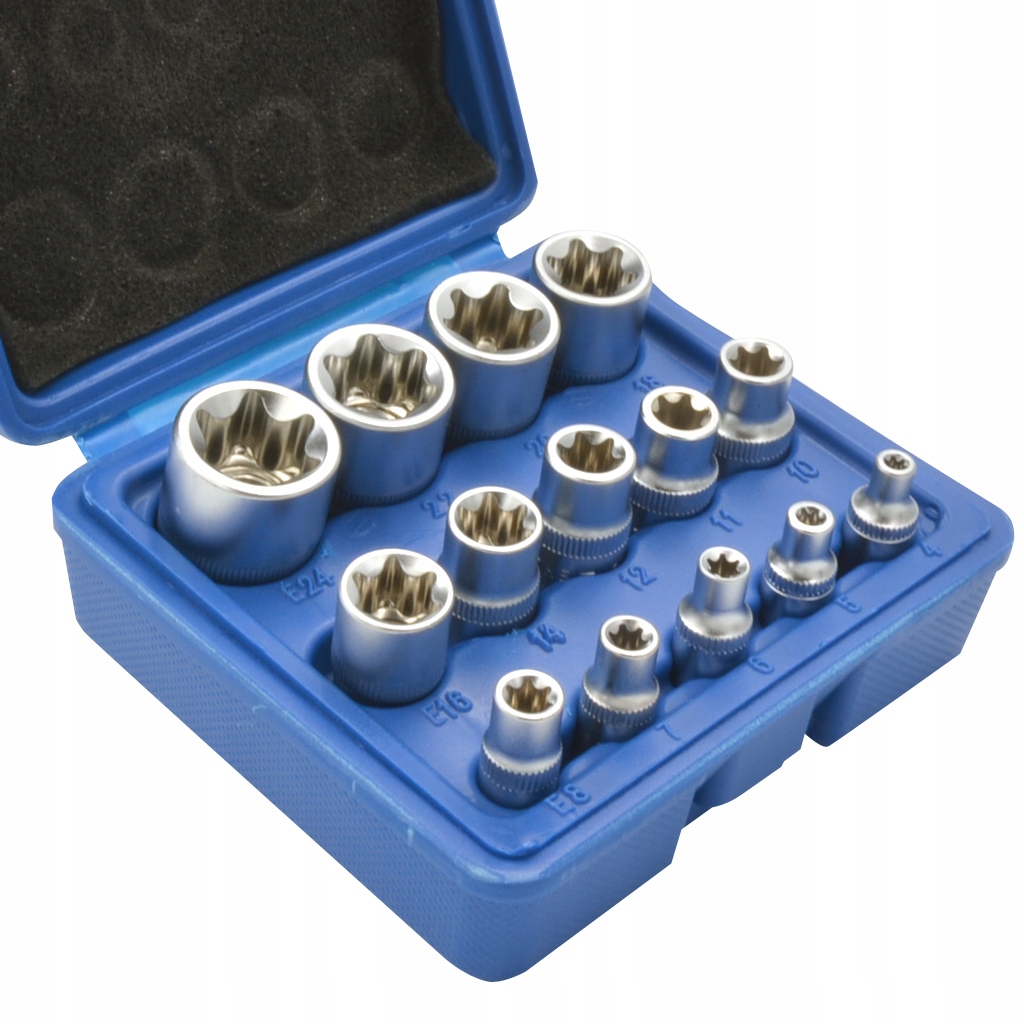 Набор торцевых головок E-TORX для 1/2", 3/8" и 1/4". Набор бережно и точно изготовлен из высокопрочной хромованадиевой стали (CrV), что значительно увеличивает их прочность и срок службы. Набор пригодится в каждой профессиональной автомастерской и в домашнем гараже. Все упаковано в удобный и прочный пластиковый чемодан.