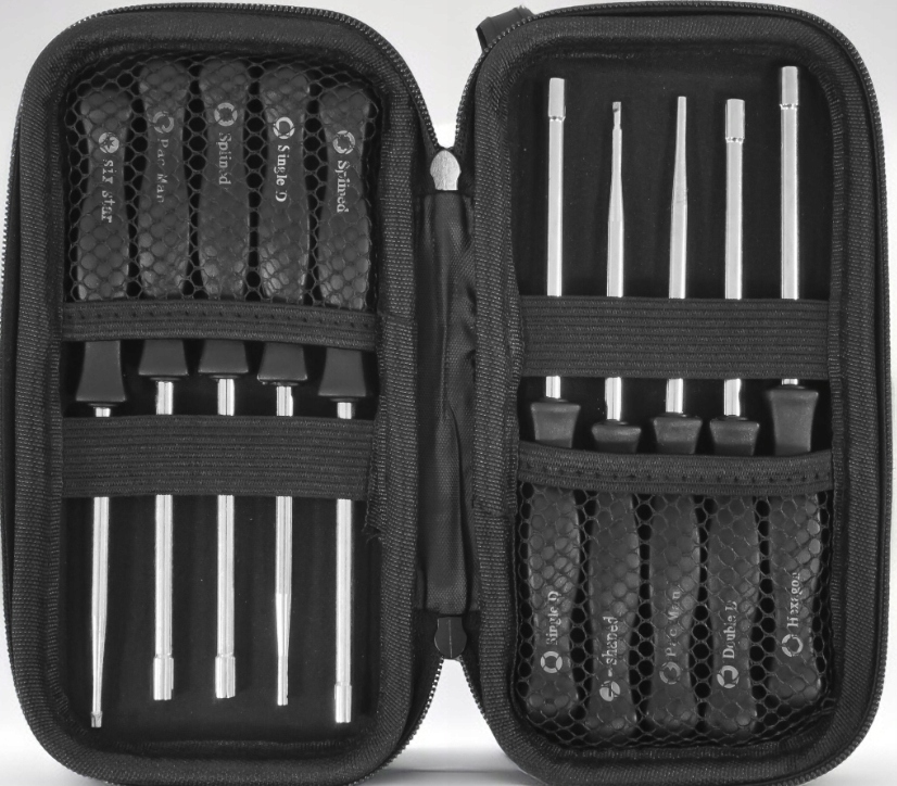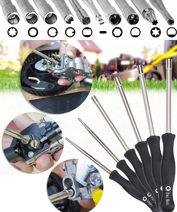 Набор включает в себя 10 различных типов клавиш, что делает этот набор универсальным и позволяет регулировать различные типы карбюраторов. Облегчает транспорт: