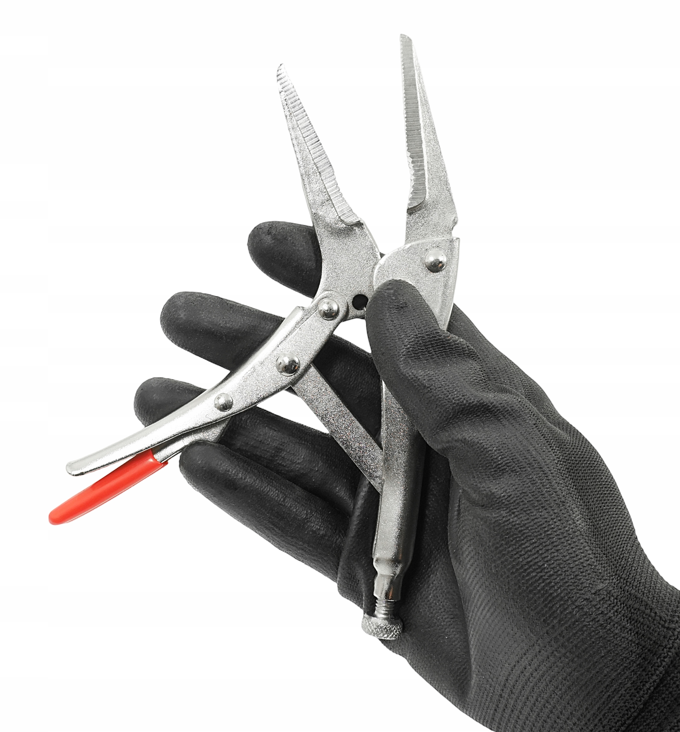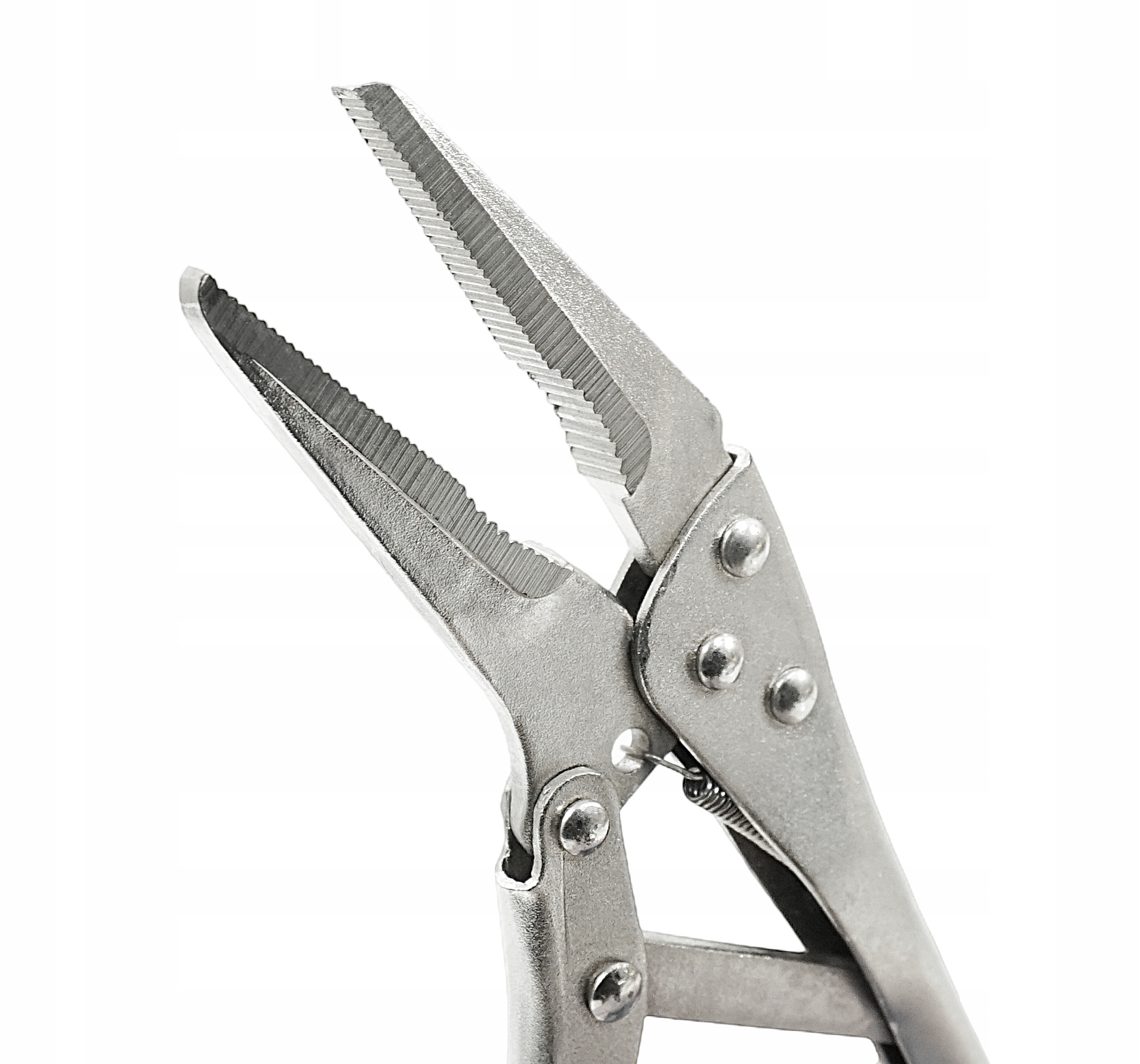 Винтовая регулировка раскрытия губок позволяет подогнать плоскогубцы под материалы различной толщины и формы. Благодаря этому инструмент становится чрезвычайно универсальным, и пользователь может легко подготовить его для работы с тонкими листами, стальными профилями или элементами неправильной формы. Точная настройка обеспечивает повышенную точность и удобство работы, особенно для задач, требующих повторяемости и стабильности.