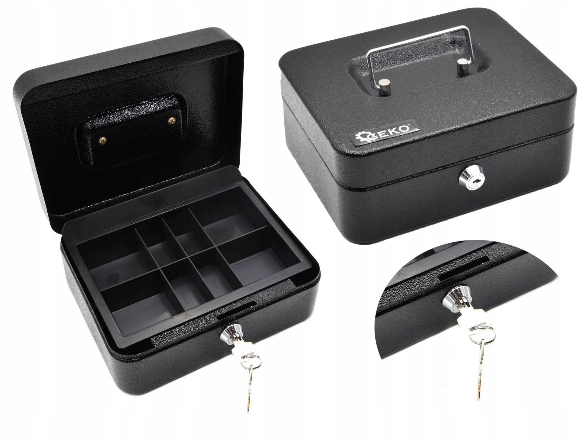 Металлическая копилка. Запирается (в комплекте 2 шт.). Оснащен ручкой для переноски. Внутри пластиковая вставка с перегородками: