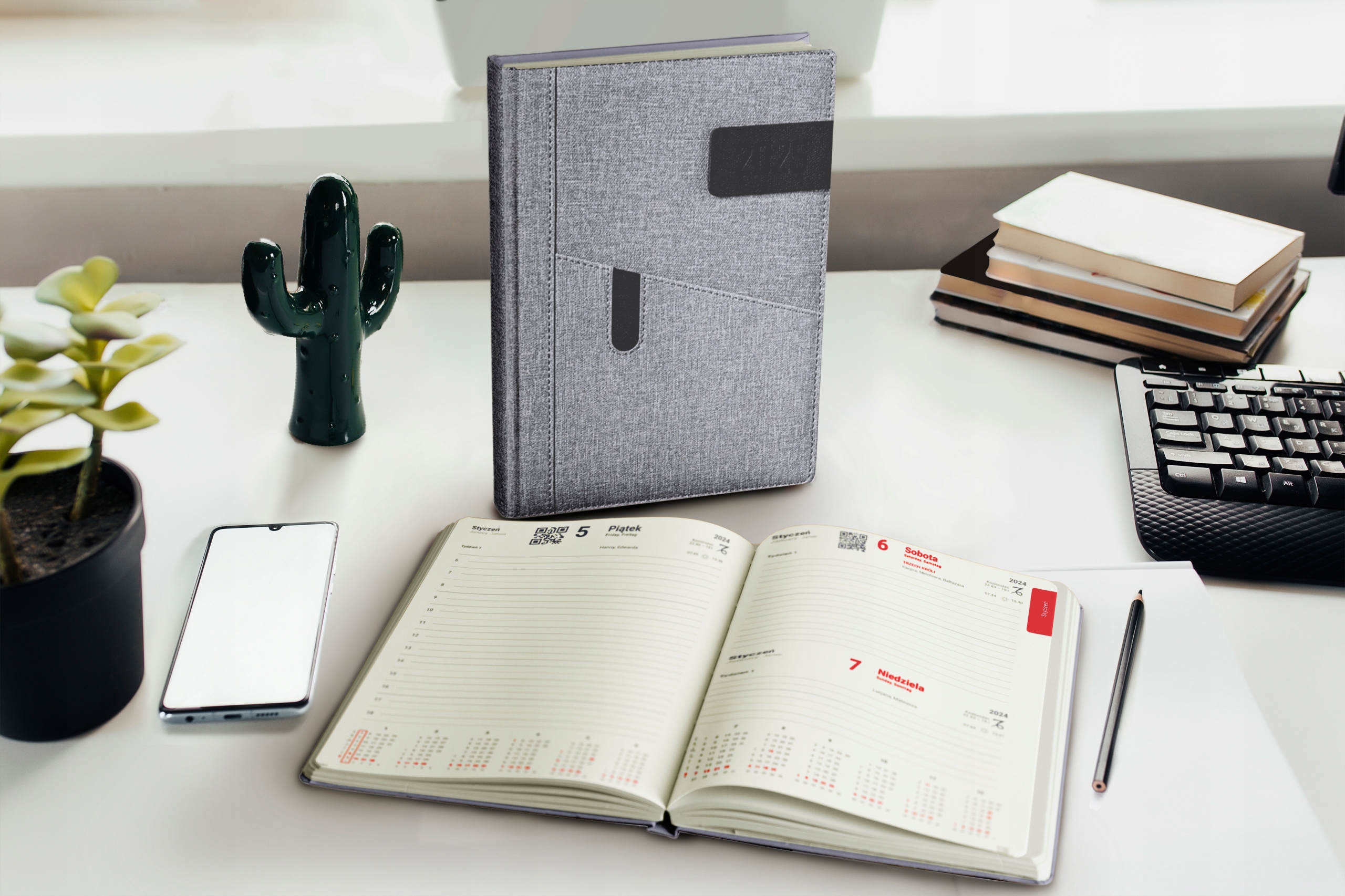 - Календарь: сокращенный трехлетний календарь, ежедневный календарь (PL, GB, D) с сокращенным годовым макетом, страница для заметки, именины, праздники, Зодиак, восходы и закаты, фазы Луны, нумерация недель,цветная карта Польши