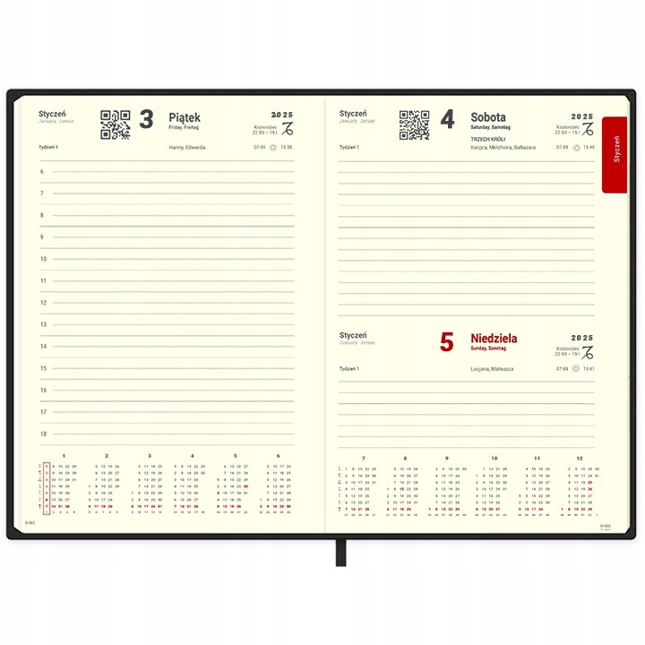 - Календарь: сокращенный Календарь на 3 года , ежедневный календарь (PL, GB, D) с укороченной годовой раскладкой, страница для заметок, именины, праздники, Зодиак, восходы и закаты, фазы Луны , нумерация недель, красочная карта Польши