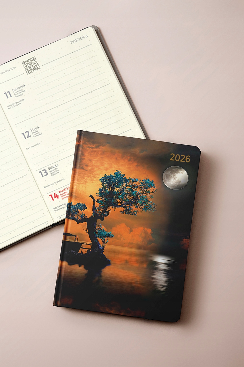 Календарь: сокращенный календарь на 2 года, еженедельный календарь (PL, GB, D) с укороченной ежемесячной раскладкой, встроенная адресная книга, краткая информационная часть, карта Польши.
