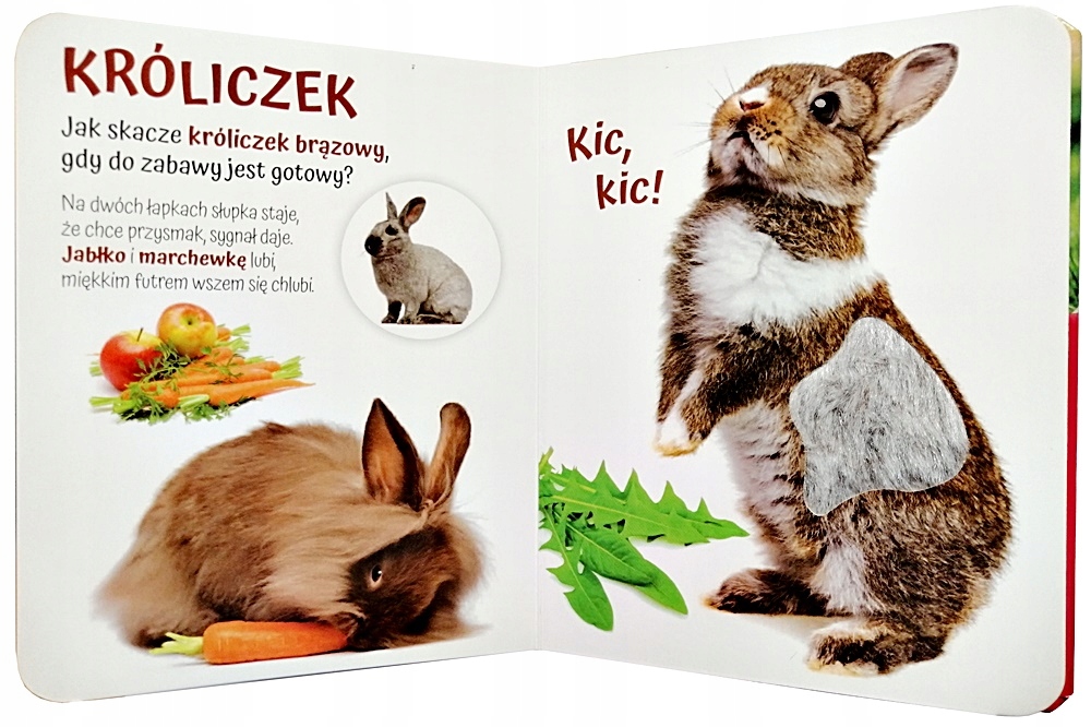 - самые важные слова ВЫДЕЛЕНЫ цветом. Каждый малыш будет рад увидеть, каково прикасаться КОШКЕ, КРОЛИКУ или ПОПУГАЮ!