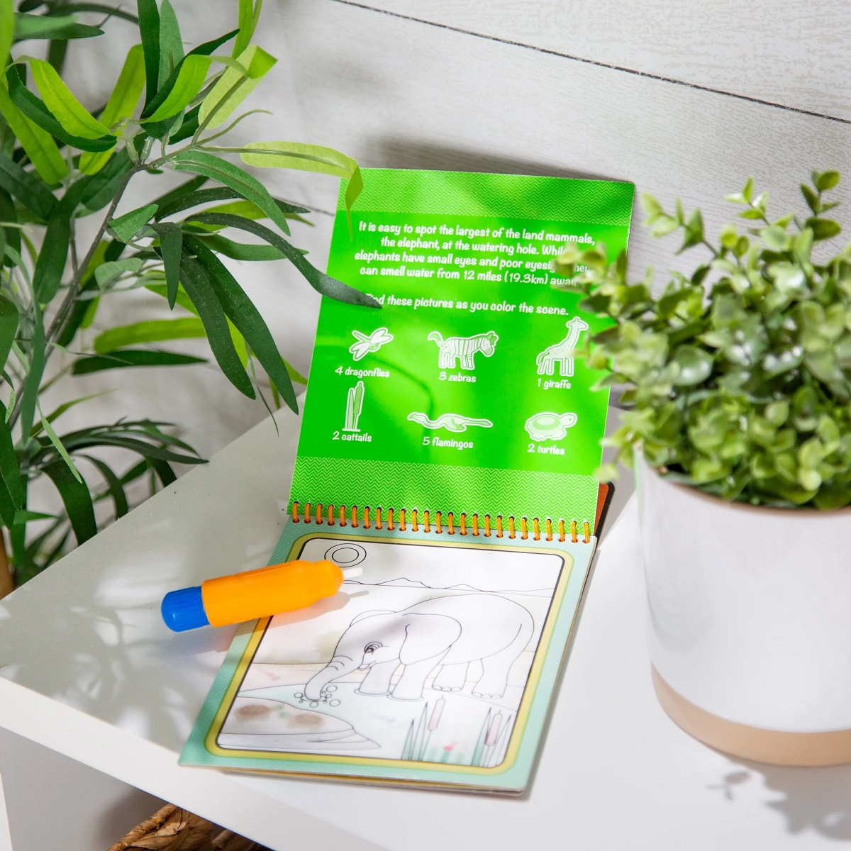 Благодаря специальному маркеру мы легко находим картинки и, что не менее важно, нет возможности испачкать руки или пролить на себя воду. Удобное использование набора – одно из его преимуществ. Еще очень важно то, что это многоразовый комплект. Когда картинки высохнут, их можно будет раскрасить снова. Время высыхания рисунка составляет несколько-десяток минут.