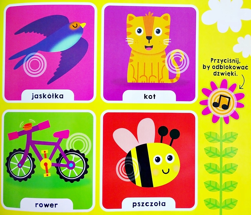 - Чтобы книга познакомила вас с миром разнообразных звуковнеобходимо нажать пальцем на отмеченное поле, чтобы разблокировать звуки на странице.