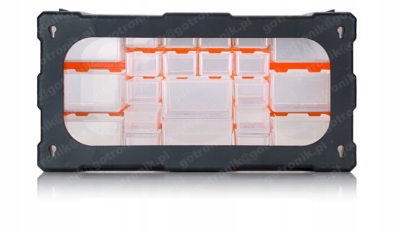 Практичный складской стеллажный модуль с выдвижными ящиками, оснащенными отсеками. Полка идеально подходит для хранения мелких предметов, например, электронных компонентов, винтов, деталей, гаек, шайб, камней, полуфабрикатов, монет, марок, крючков и других мелких предметов.