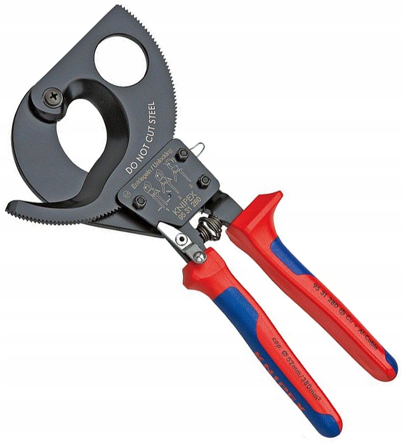 - Для резки одно- и многожильных медных и алюминиевых кабелей.