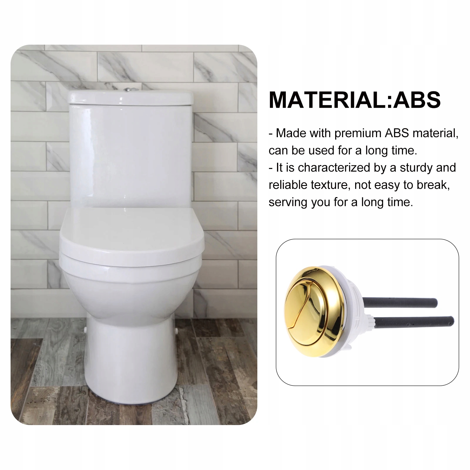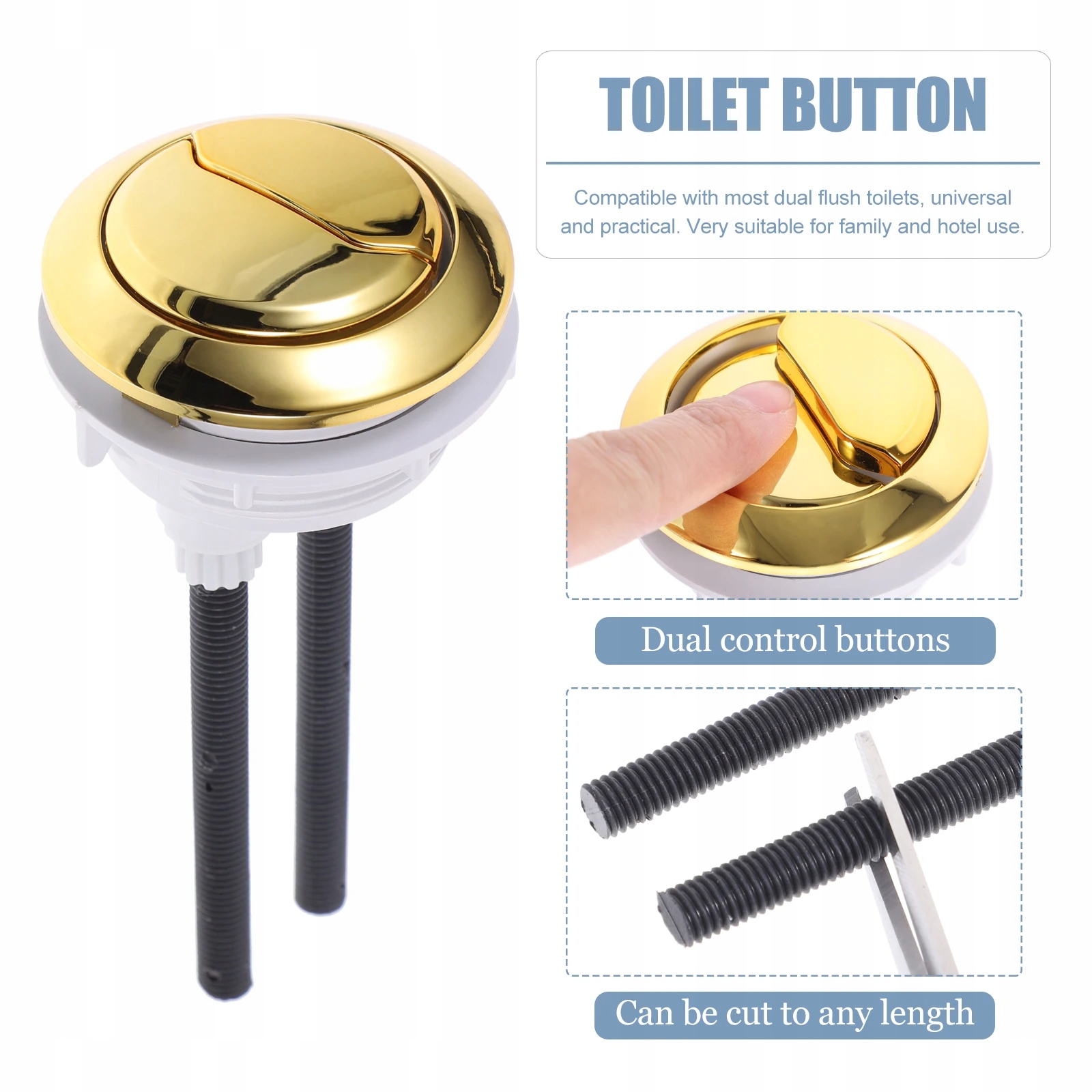 Если вы ищете профессиональную и доступную кнопку для унитаза с двойным смывом, ваш поиск здесь. Это потому, что наш продукт может удовлетворить ваши потребности. Изготовленный из высококачественного материала, он практичен и долговечен при длительном использовании. Его нелегко деформировать, и он обеспечивает большой комфорт.