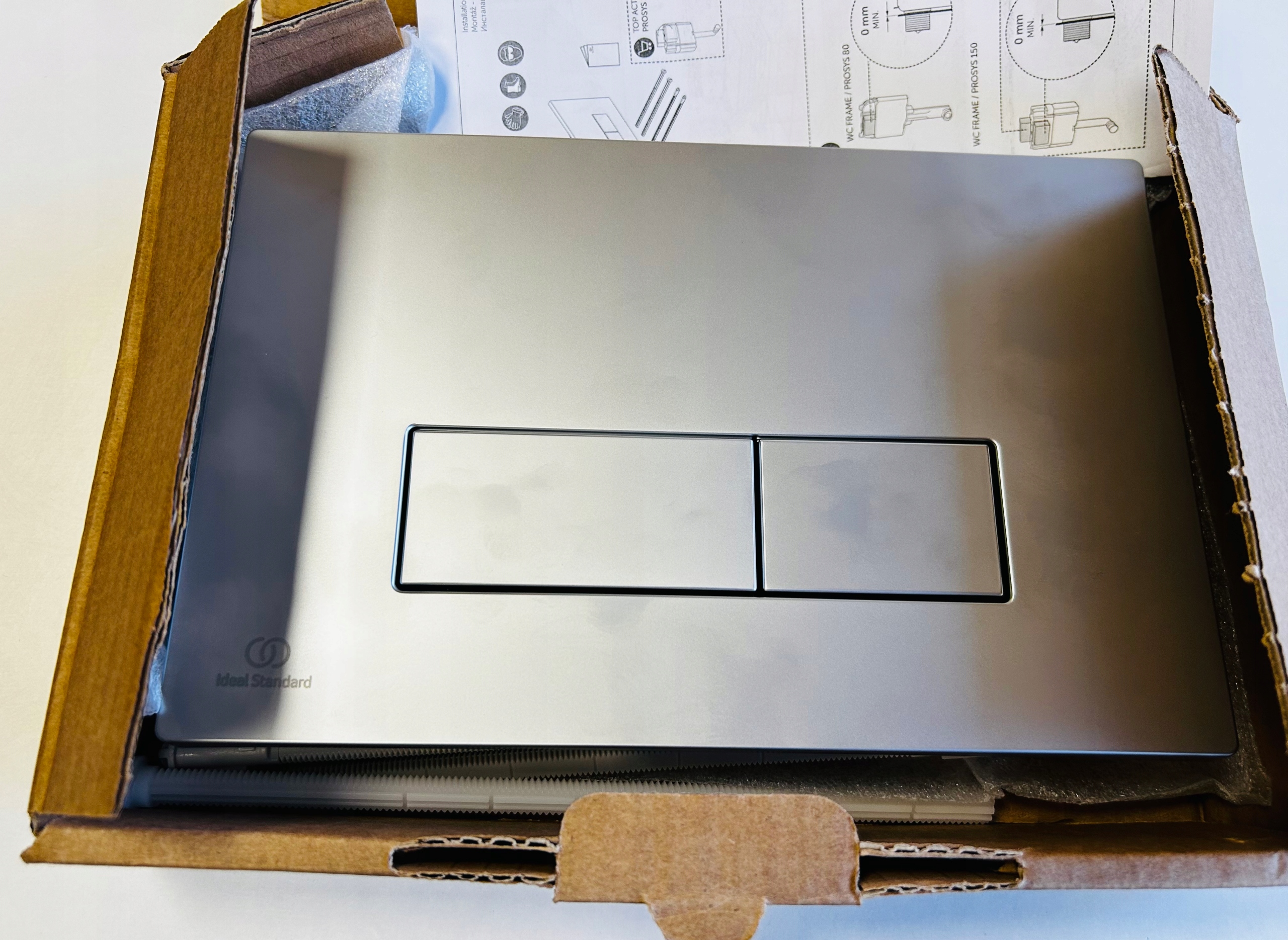 Кнопка двойного смыва Ideal Standard Oleas M2 выглядит очень дизайнерски в ванной комнате. Нотку роскоши добавляет внешний вид матового хрома.