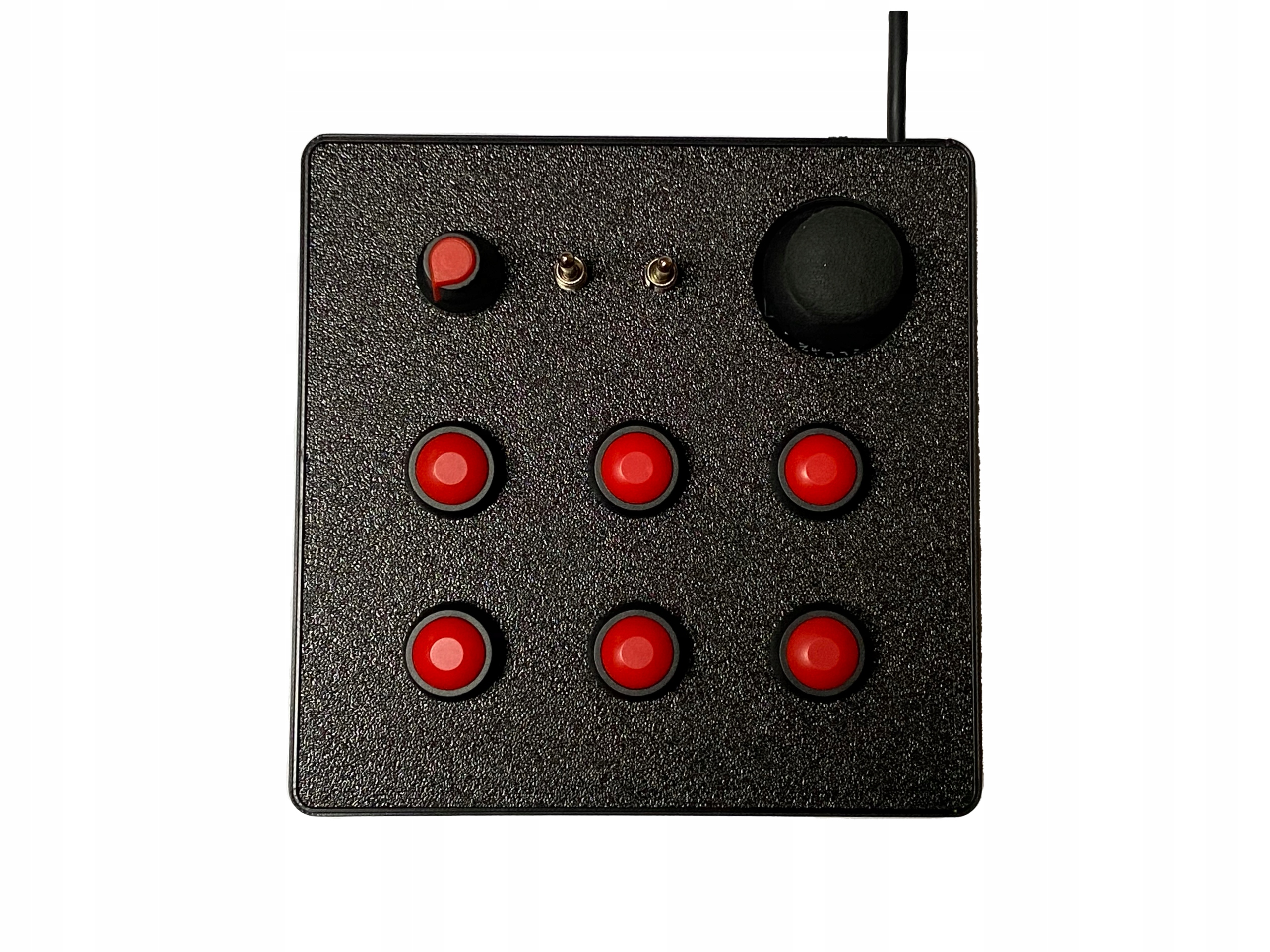 Наш блок кнопок оснащен 6 кнопками, 2 переключателями, ручкой и джойстиком с кнопкой, поэтому всего у нас 7 кнопок. Примерами использования такой коробки являются, например, включение/выключение света, поворотников, зажигания и многие другие. Ручка пригодится для навигации по меню или настройки других параметров и т.п.