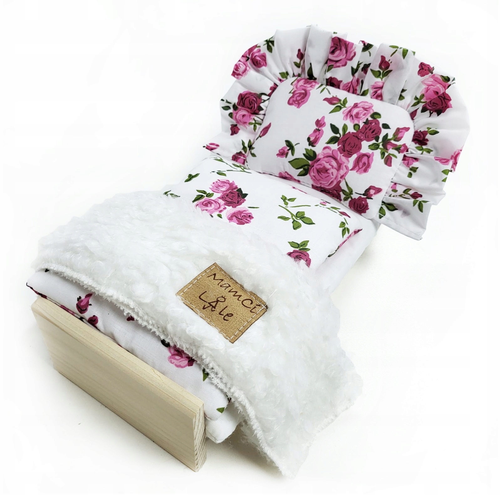 ŁÓŻKO ŁÓŻECZKO DREWNIANE DLA LALKI LALEK Z POŚCIELKĄ