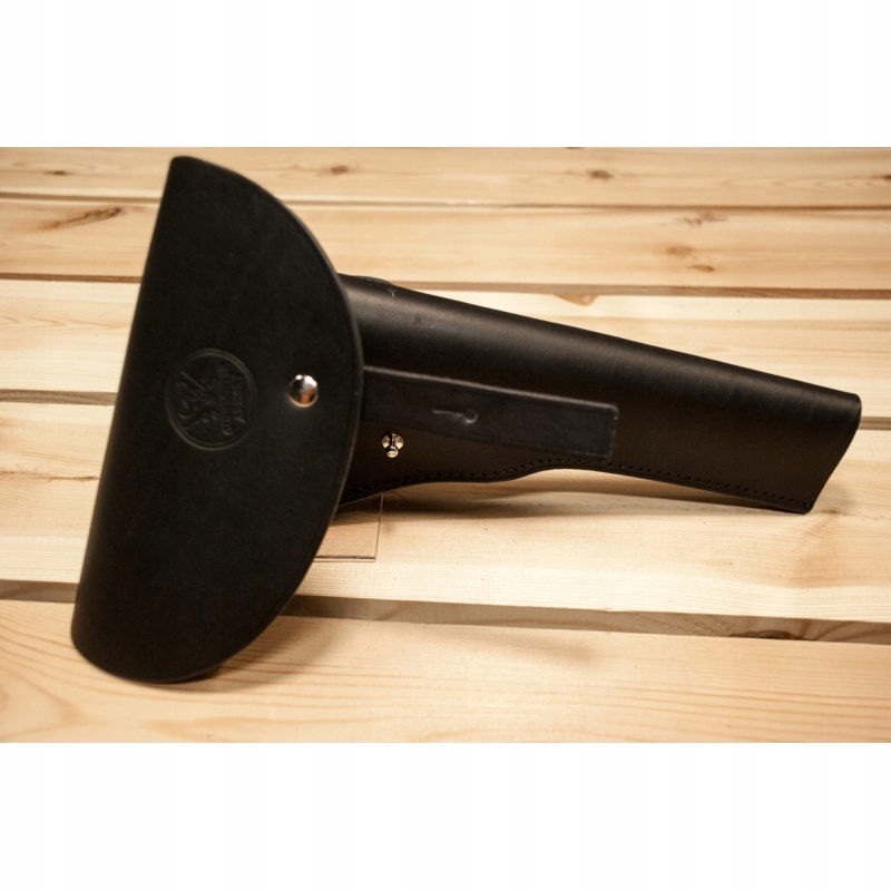 Кобура для черного порохового револьвера изготовлена из коровьей кожи растительного дубления.