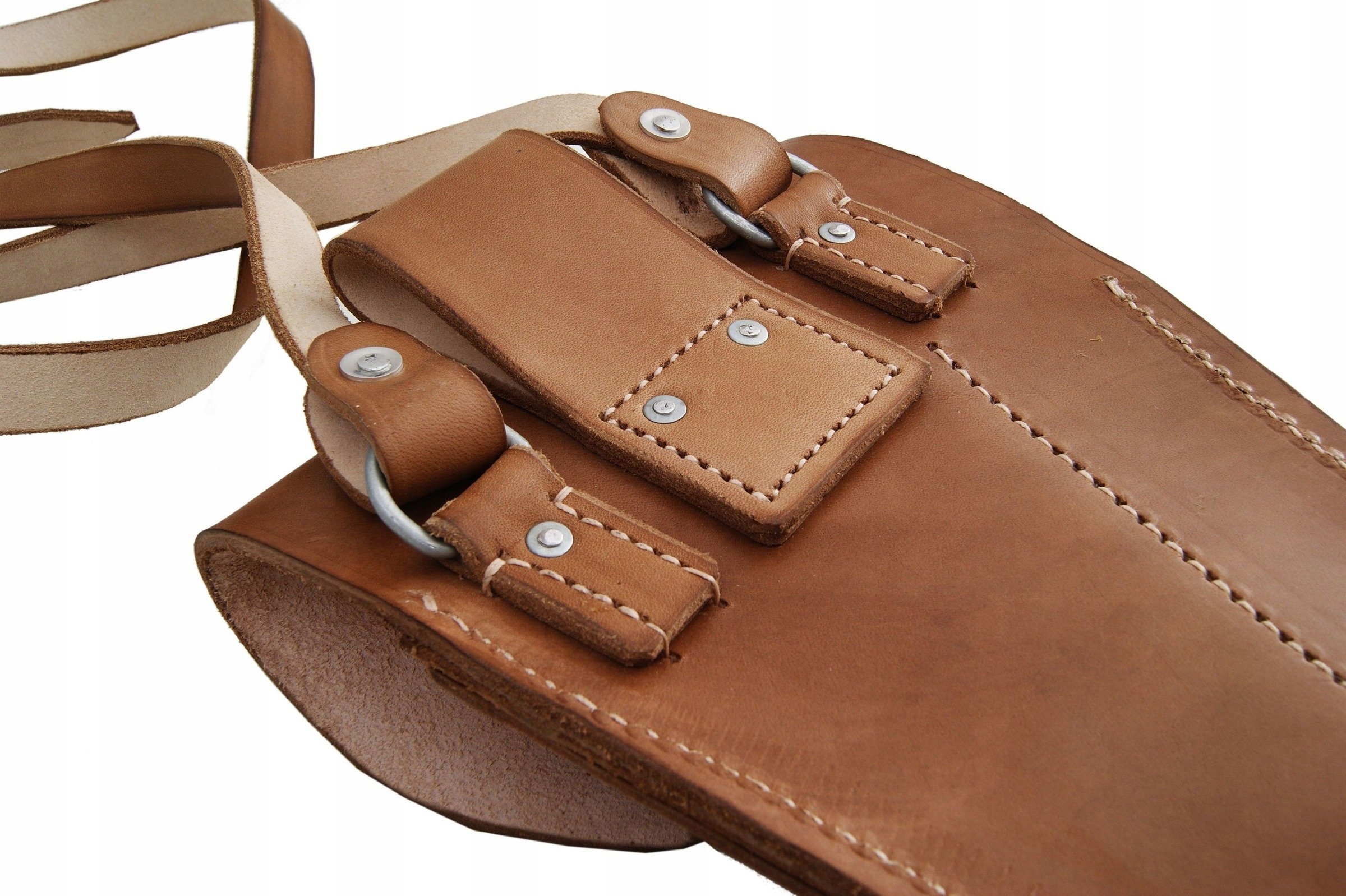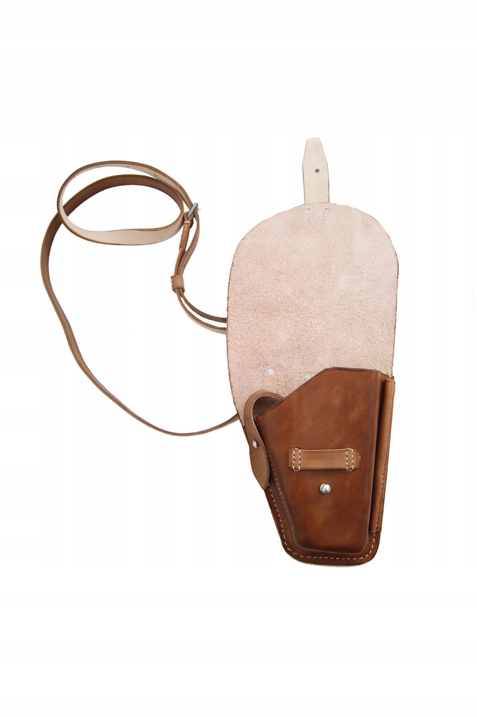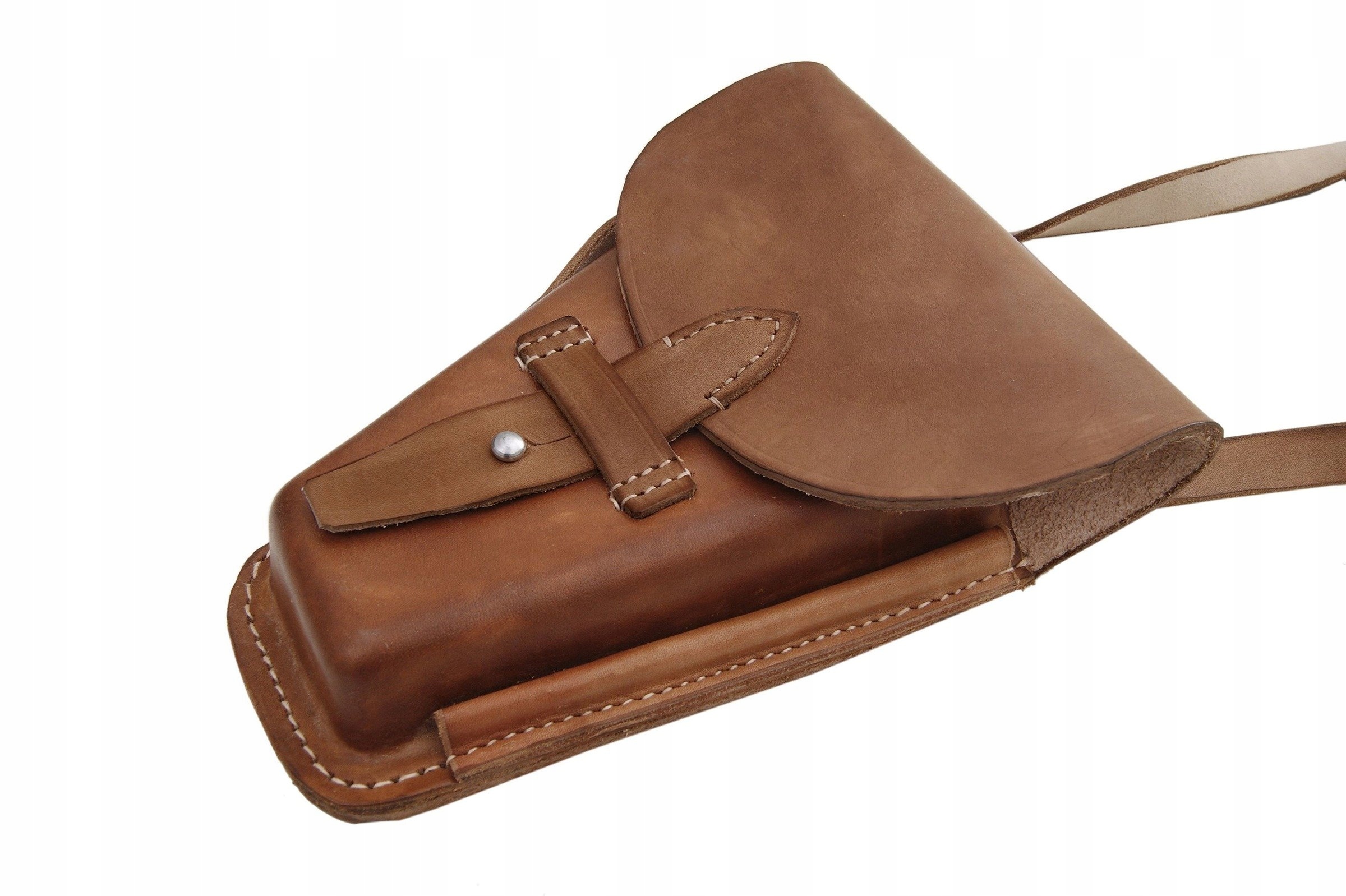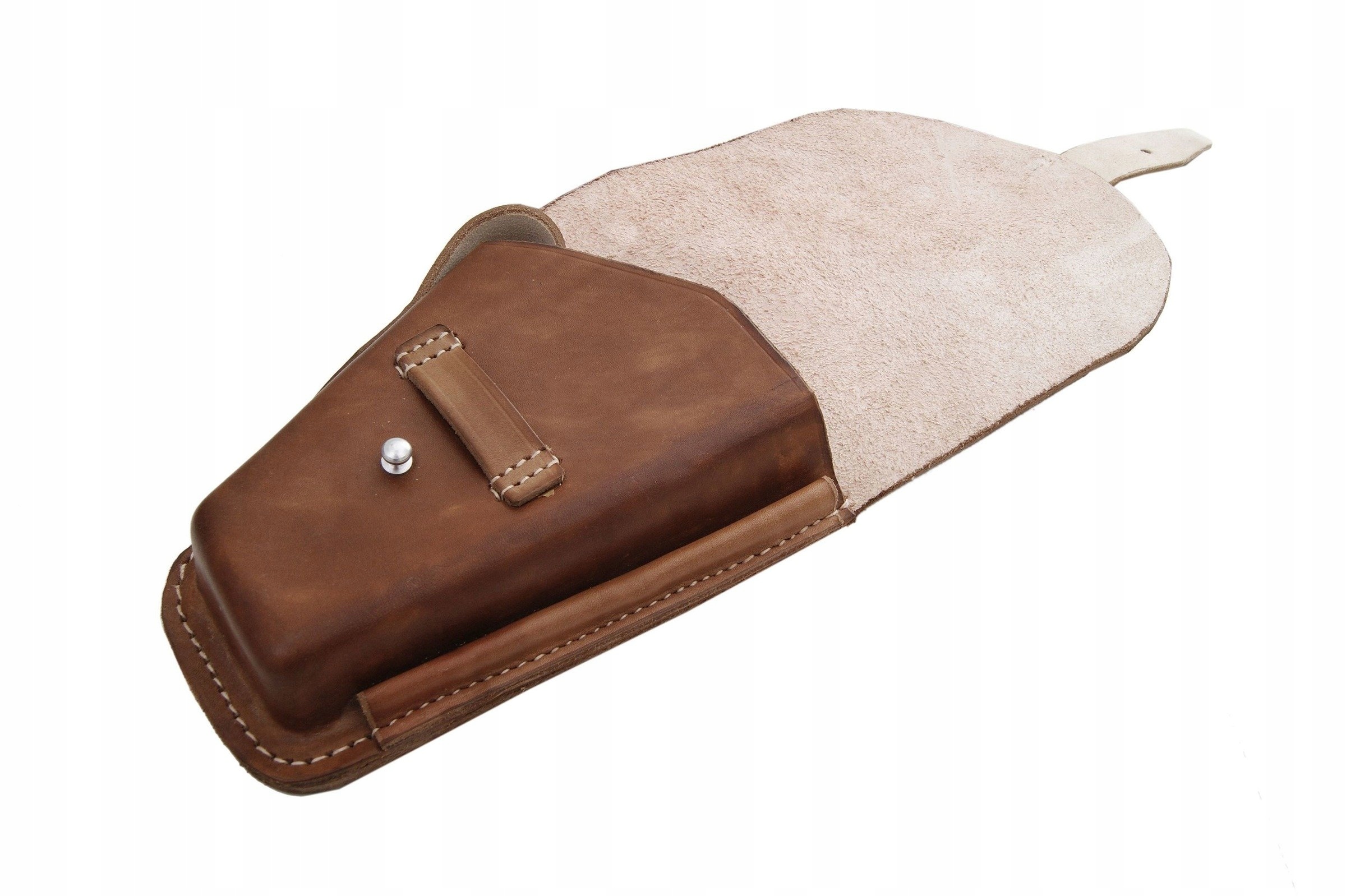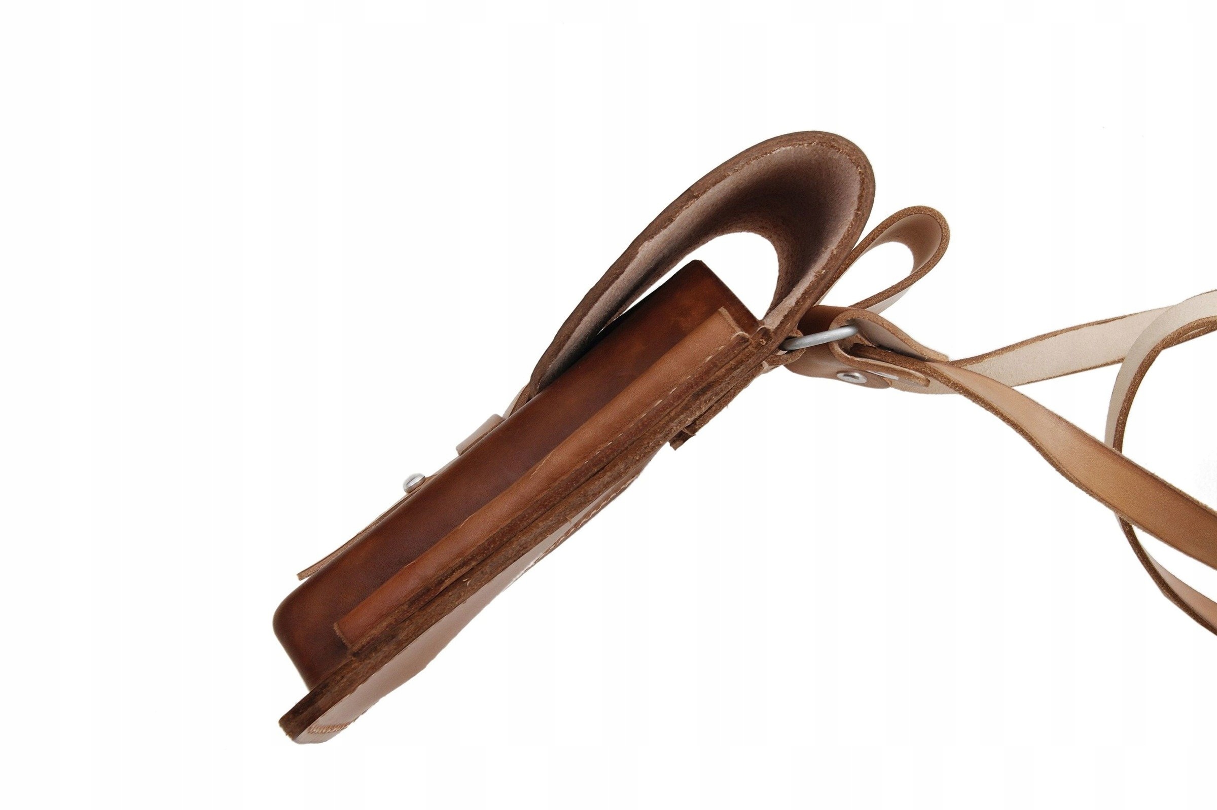 Кобура изготовлена из натуральной, отечественной кожи, окрашенной в коричневый цвет.