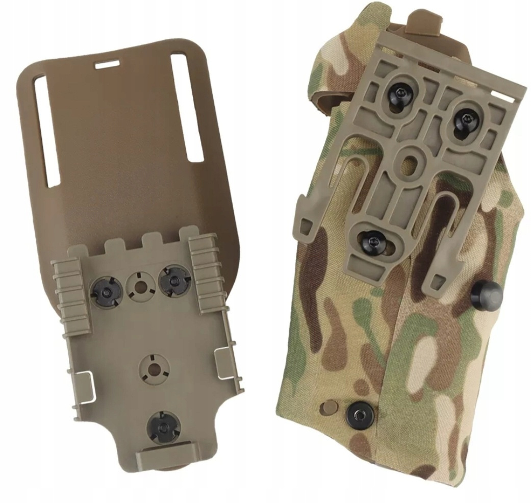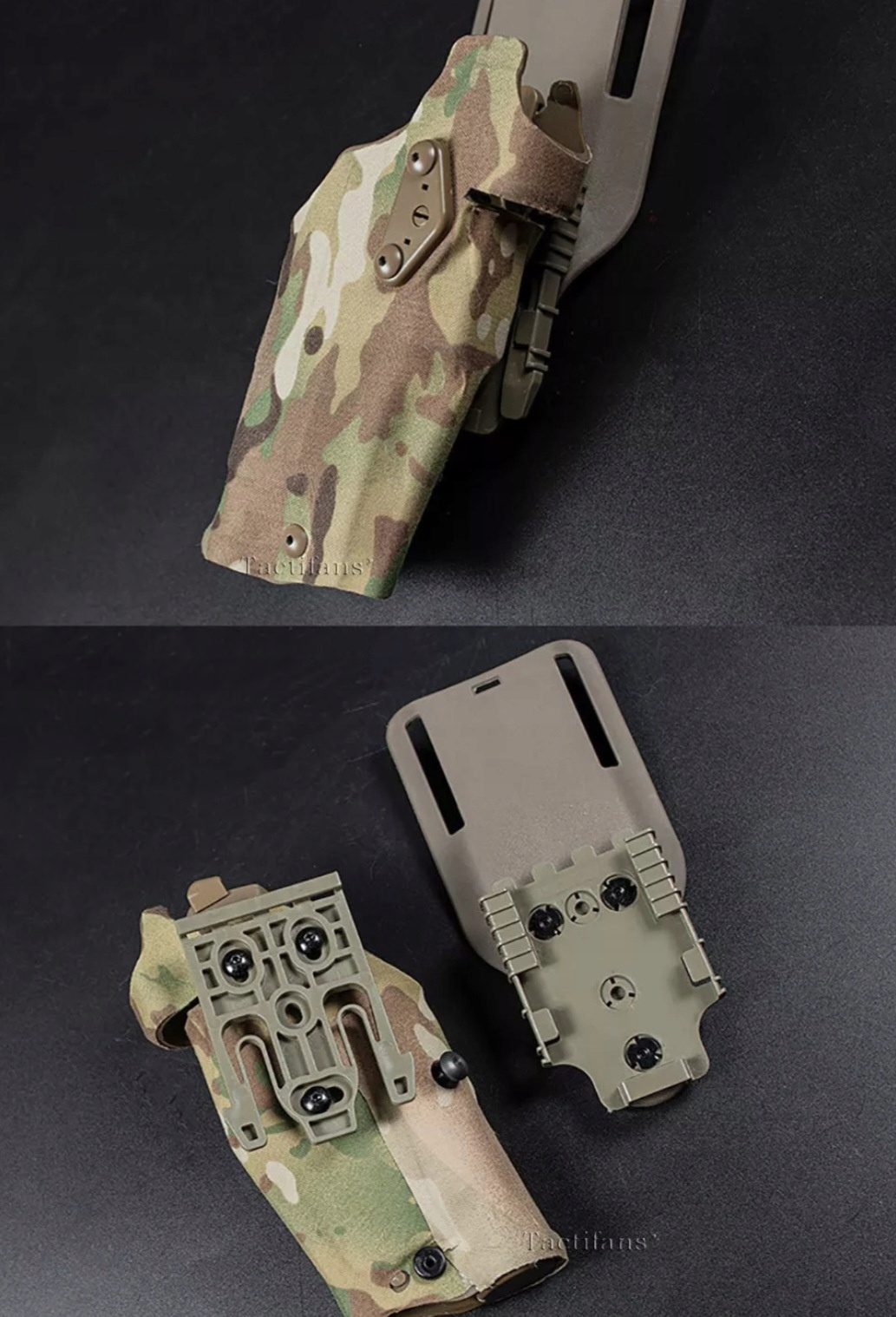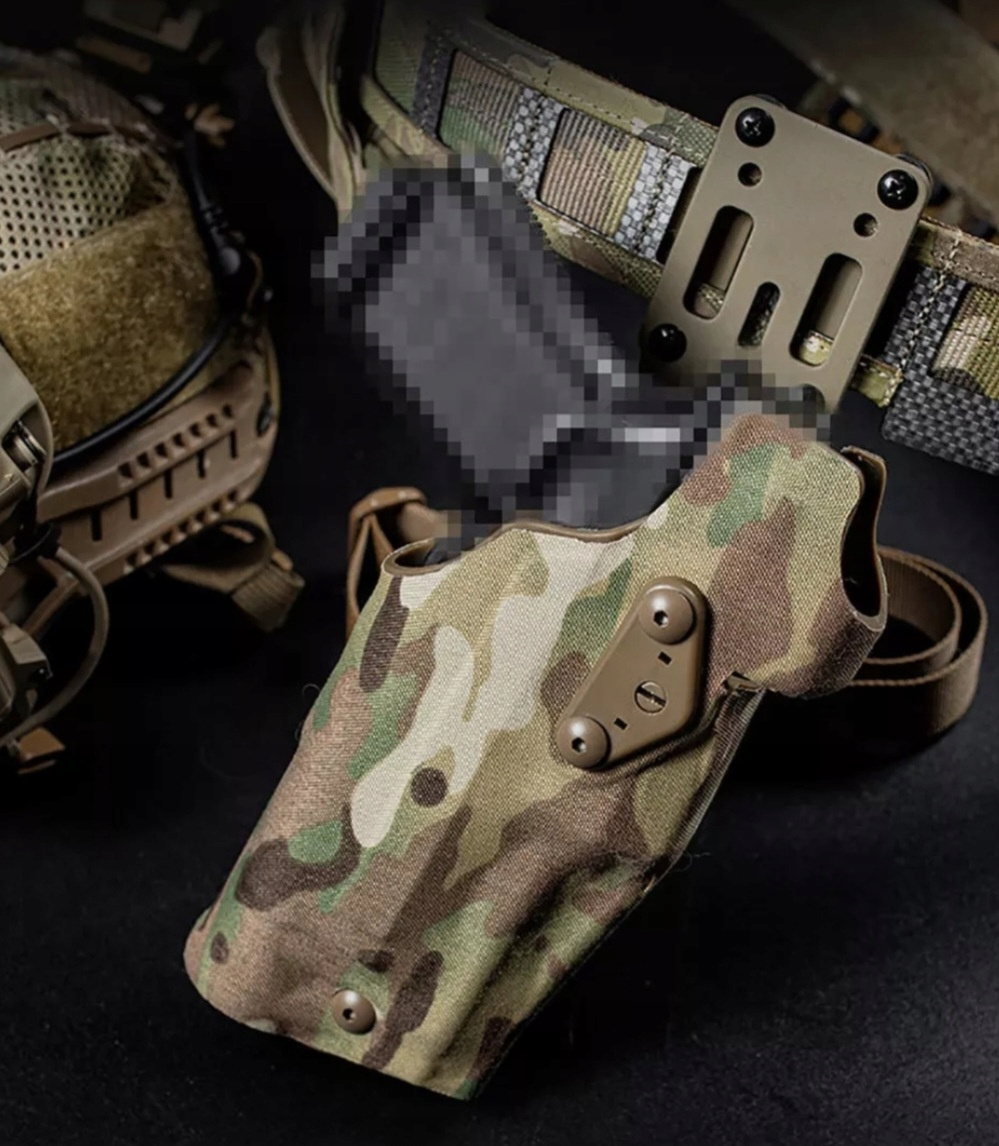- Кобура вместе с системой ALS, фиксирующей оружие, покрыта приятным на ощупь камуфляжным материалом.