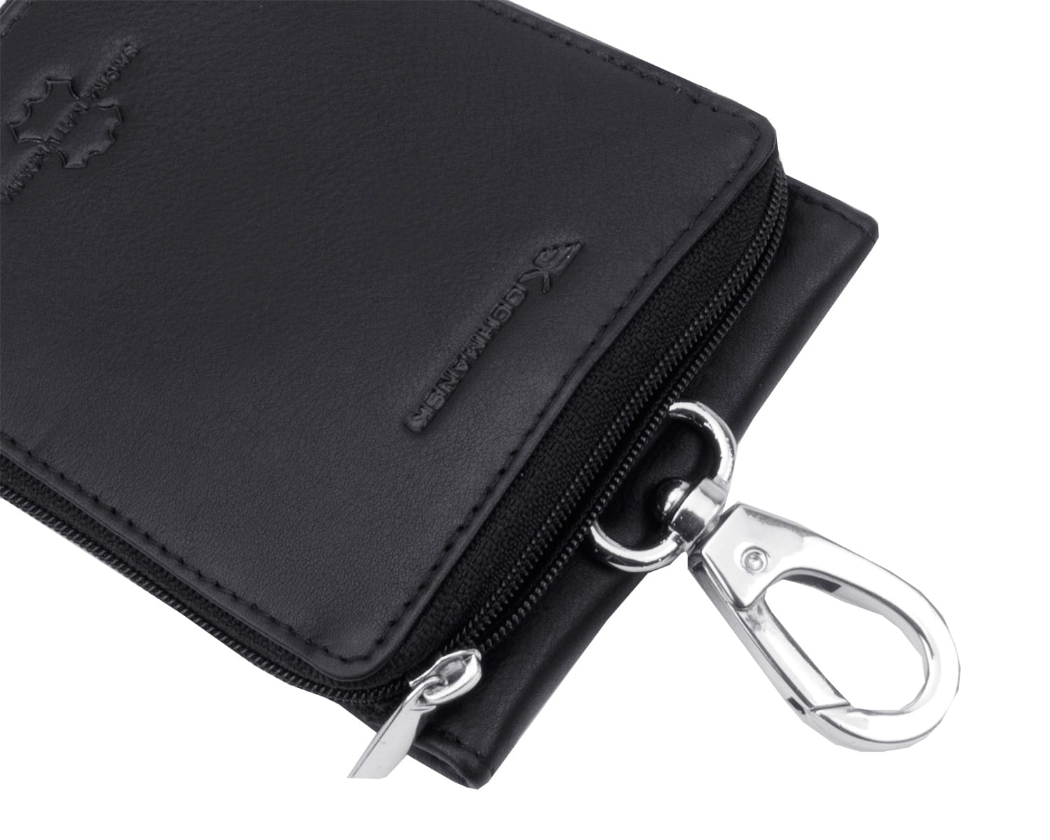 Эта модель, помимо кармана с БЕЗКЛЮЧЕВОЙ защитой, имеет еще внешний карман на молнии. Внутри кармана 6 карабинов для классических плоских ключей.