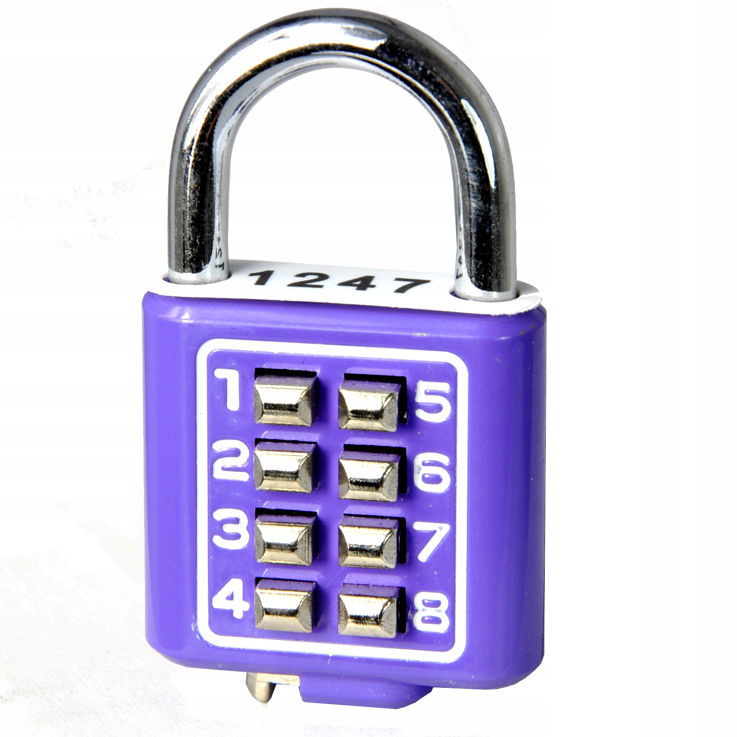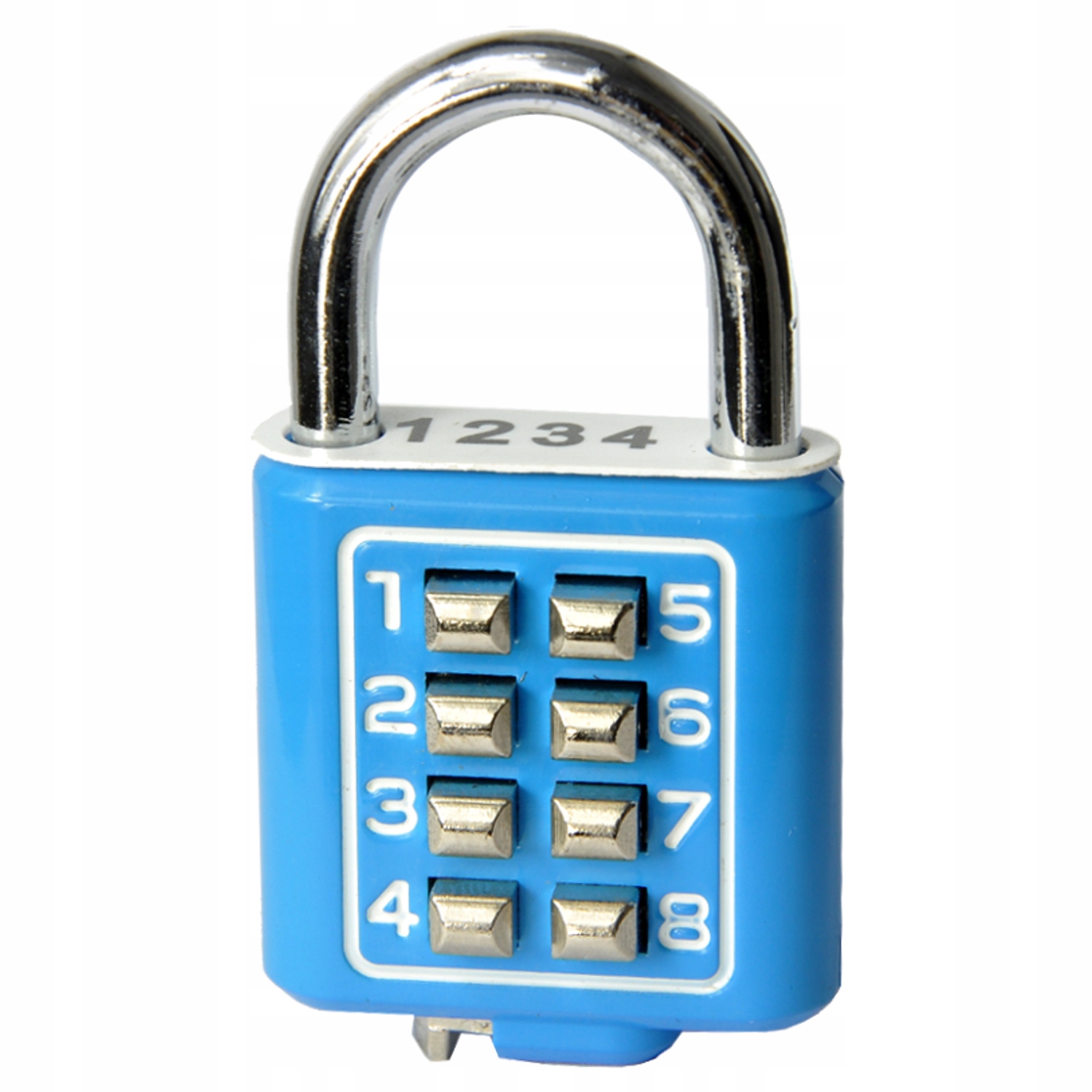 8-кнопочный навесной замок с 4-значным неизменяемым индивидуальным кодом (устанавливается производителем), написанным на прикрепленной бирке