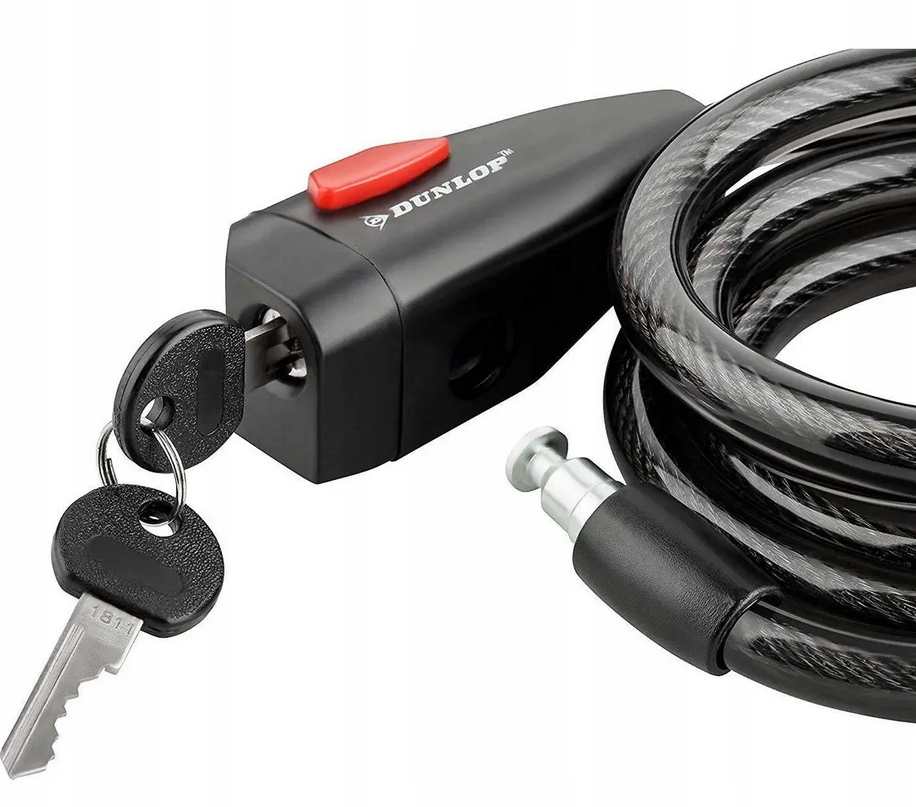 ВЕЛОСИПЕДНЫЙ ЗАМОК DUNLOP СПИРАЛЬНЫЙ КЛЮЧ С КРЫШКОЙ 1,2X150 СМ