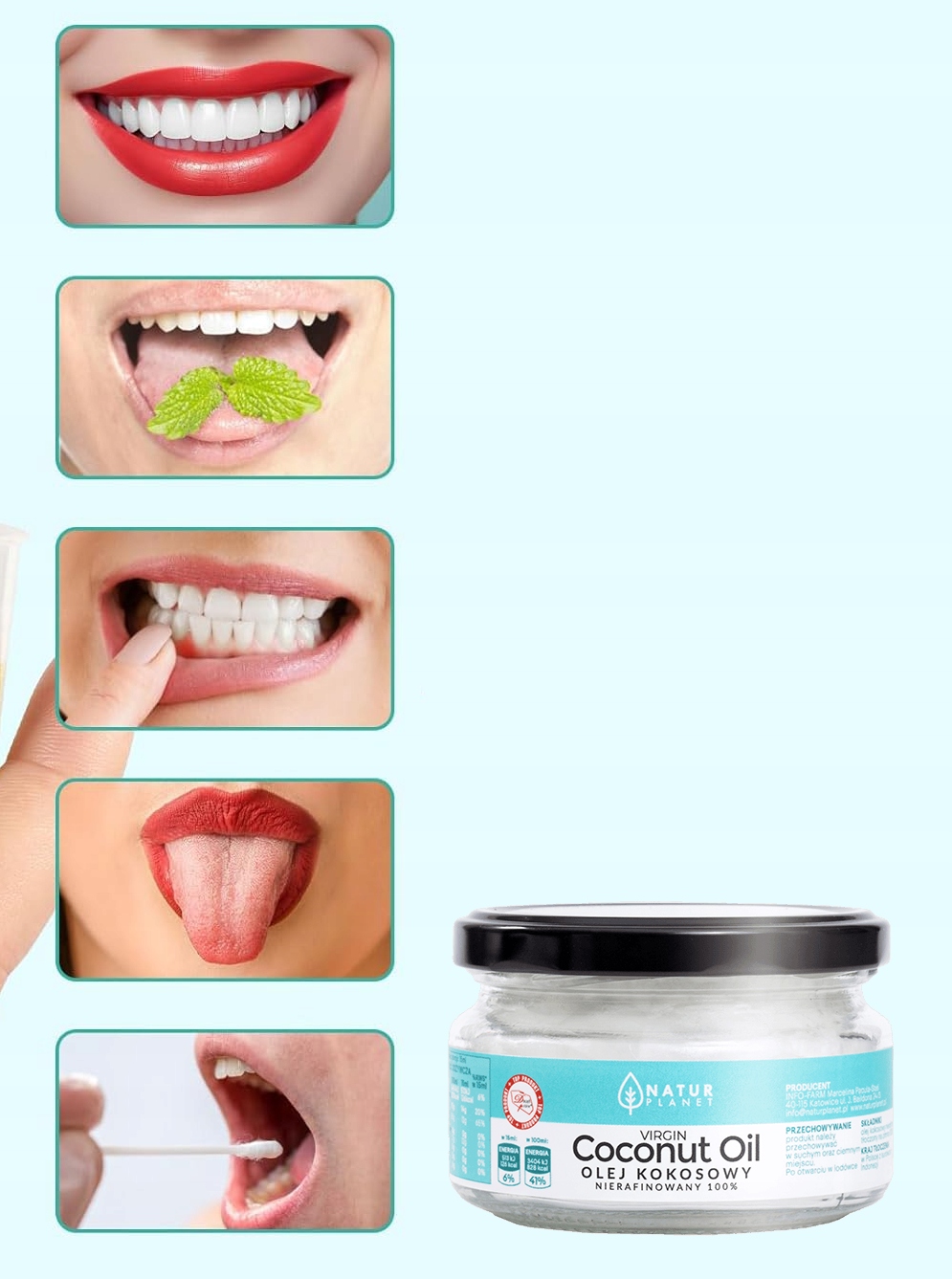 - ✅ Улучшает здоровье десен – Регулярное полоскание рта кокосовым маслом помогает уменьшить воспаление десен и поддерживает их регенерацию.