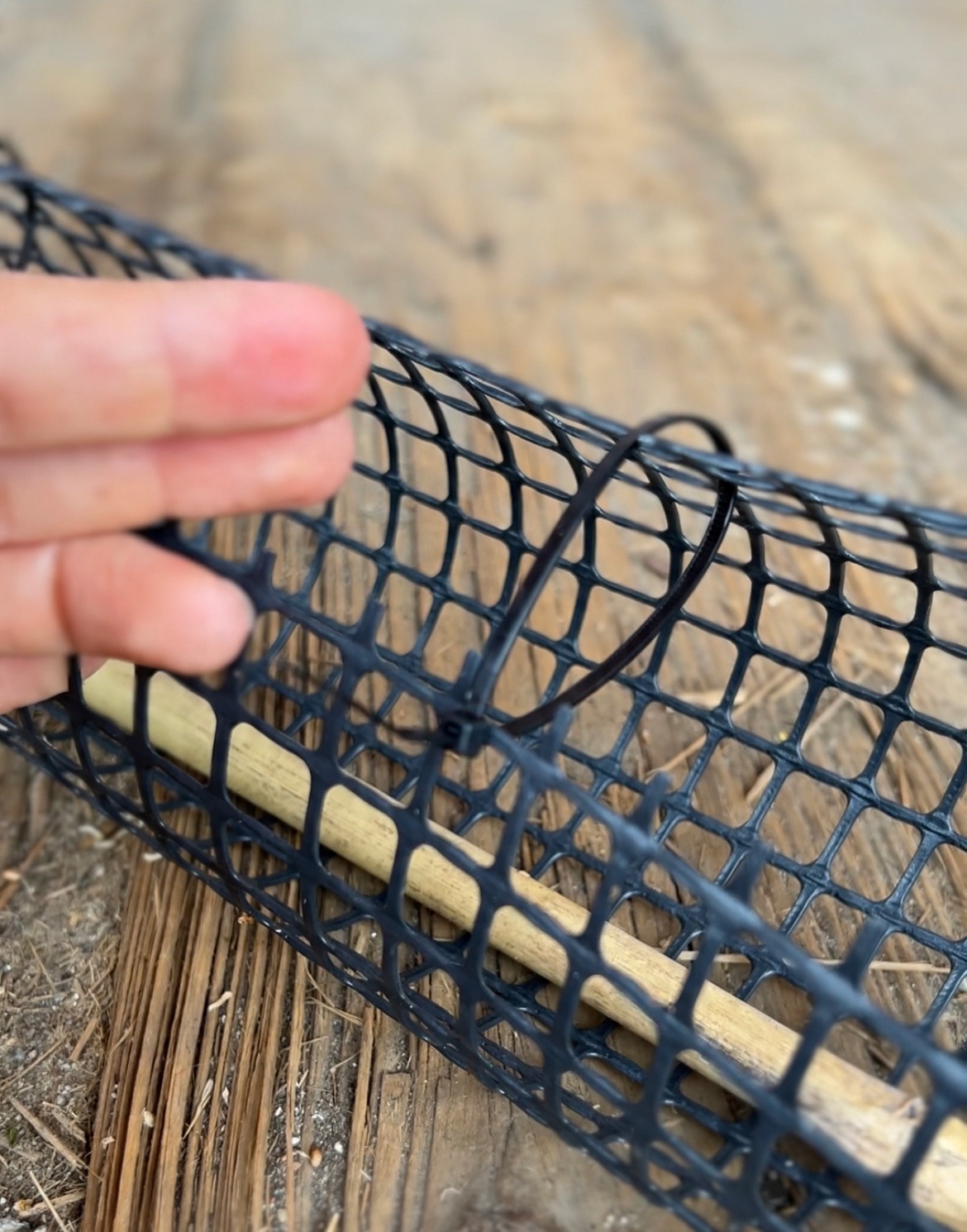 - Вы можете свернуть сетку внизу колышка так, чтобы растение обхватило сетку корнями< /li>