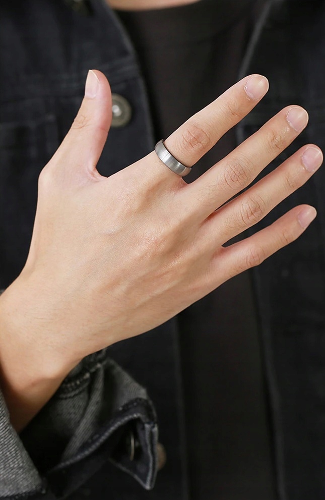Красивое серебряно-черное матовое обручальное кольцо