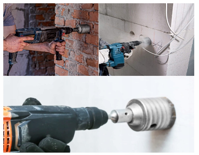 Предназначены для сверления отверстий под электрические коробки и розетки во всех видах строительных материалов, таких как кирпич, бетон, плитка, гипсокартон.
