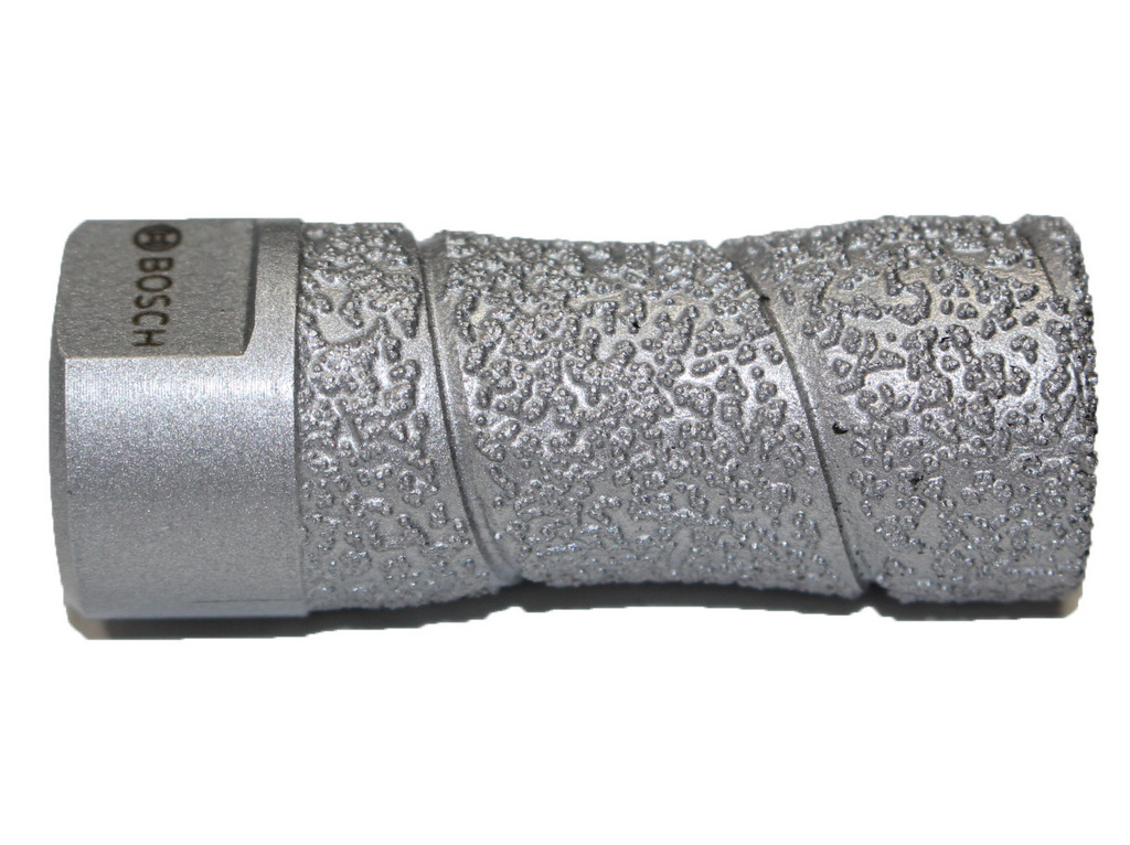 Размеры выбраны не случайно, так как это наиболее часто используемые и типовые размеры для гидравлических соединений и электрических розеток. Сверлим сухие отверстия с помощью небольших угловых шлифовальных машин. Резку начинаем с того, что делаем небольшое углубление кромкой кольцевой пилы, затем ставим ее перпендикулярно и всей поверхностью, совершая плавные покачивающие движения, вырезаем отверстие. Резка происходит быстро, какой бы твердой ни была плитка. Количество отверстий, которые можно просверлить кольцевыми пилами, зависит от типа и толщины плитки, а также темпа работы. Слишком быстрый темп может привести к перегреву алмаза и более раннему износу кольцевой пилы. Говорят, что при правильном использовании кольцевая пила может сделать до 100 отверстий. Пятый элемент набора – алмазная напильника, позволяющая увеличить отверстие, придать ему нужную форму, подогнать плитку под необычный элемент и т. д. Напильником можно работать с боковыми и передними кромками. p>