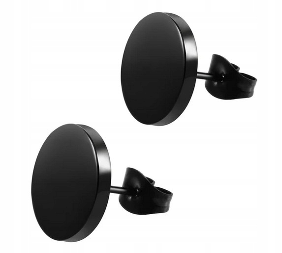 KOLCZYKI DAMSKIE ZE STALI CHIRURGICZNEJ CZARNE KÓŁKA 10 mm