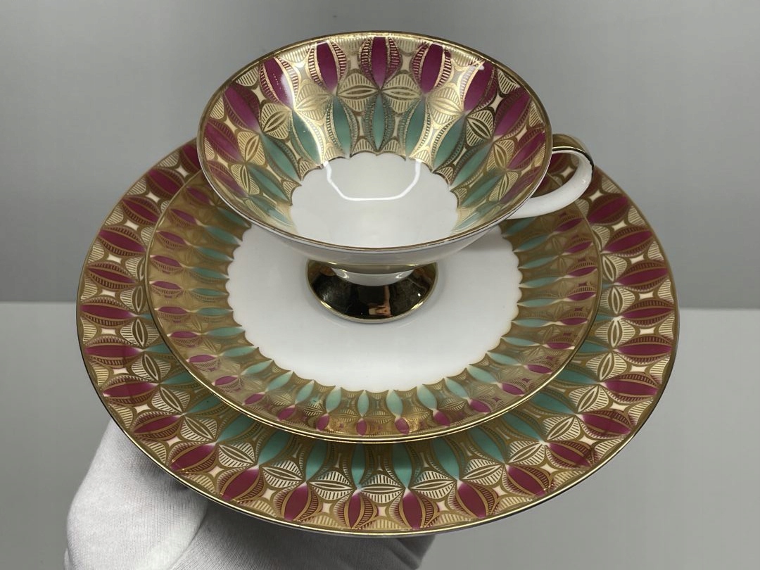 КРАСИВЫЙ КОЛЛЕКЦИОННЫЙ ФАРФОРОВЫЙ НАБОР - ЧАШКА, ЗАСТАВКА И ДЕСЕРТНАЯ ТАРЕЛКА - ГЕРМАНИЯ - БАВАРИЯ
